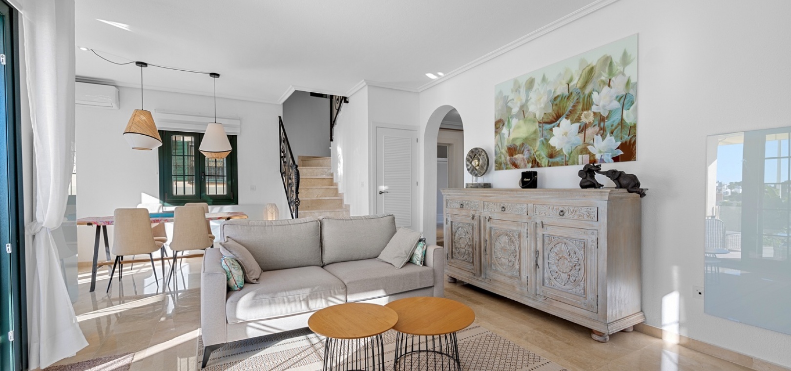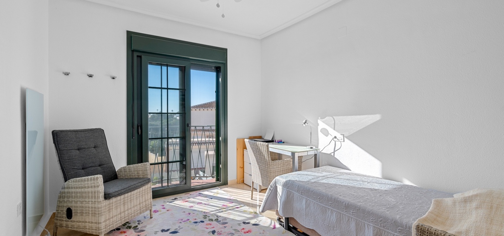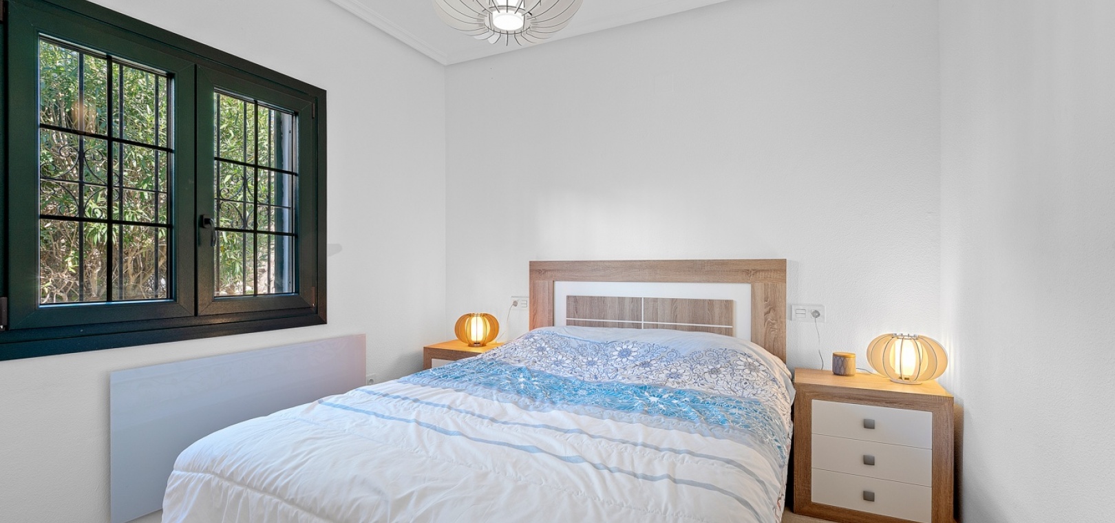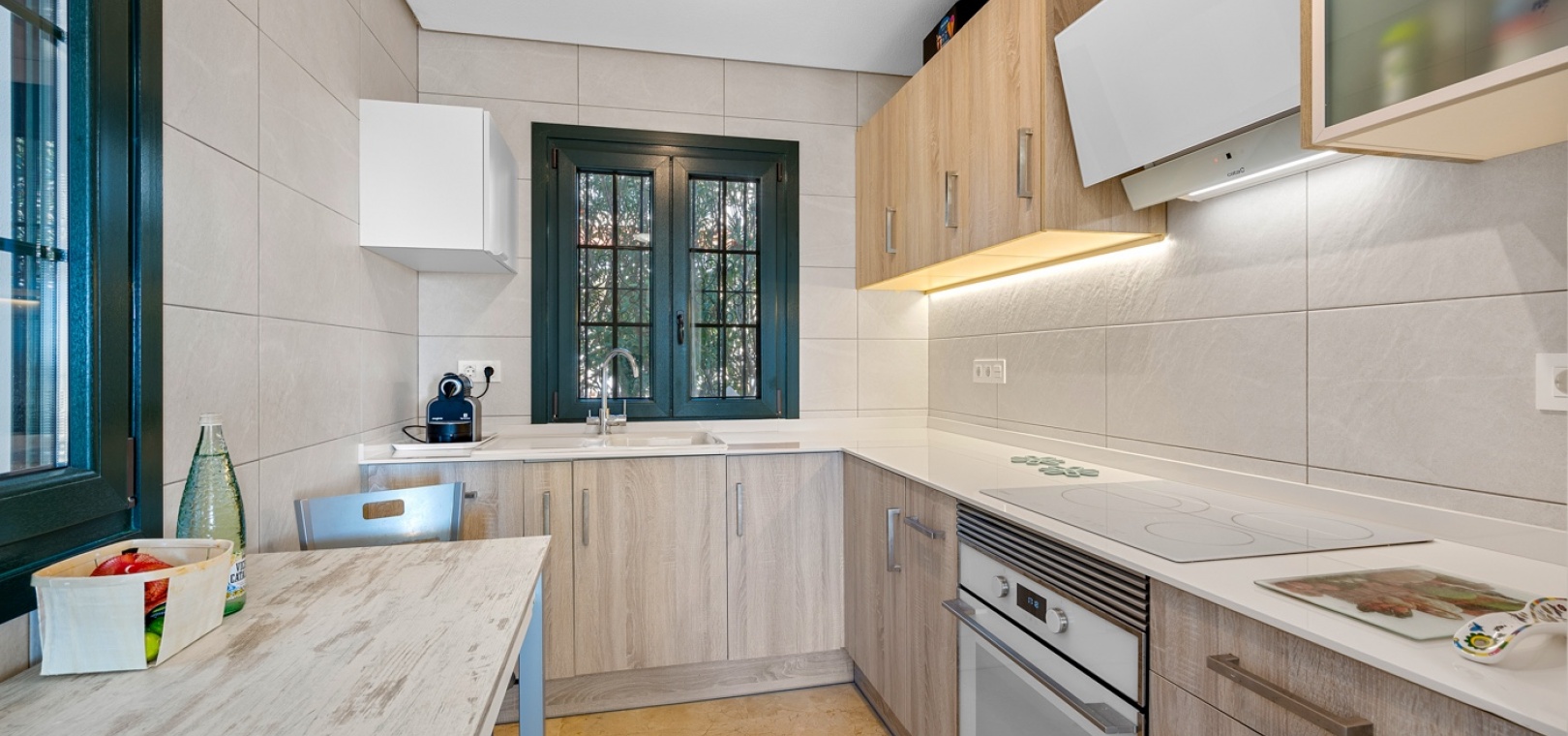 De villa beschikt over drie ruime slaapkamers en twee moderne badkamers , met een aparte, praktische keuken in het hart van de woning – ideaal om te koken in een lichte, goed geventileerde ruimte. De woning is gedeeltelijk gemeubileerd en is voorzien van airconditioning in de woonkamer, verwarmingspanelen en rolluiken voor comfort het hele jaar door.