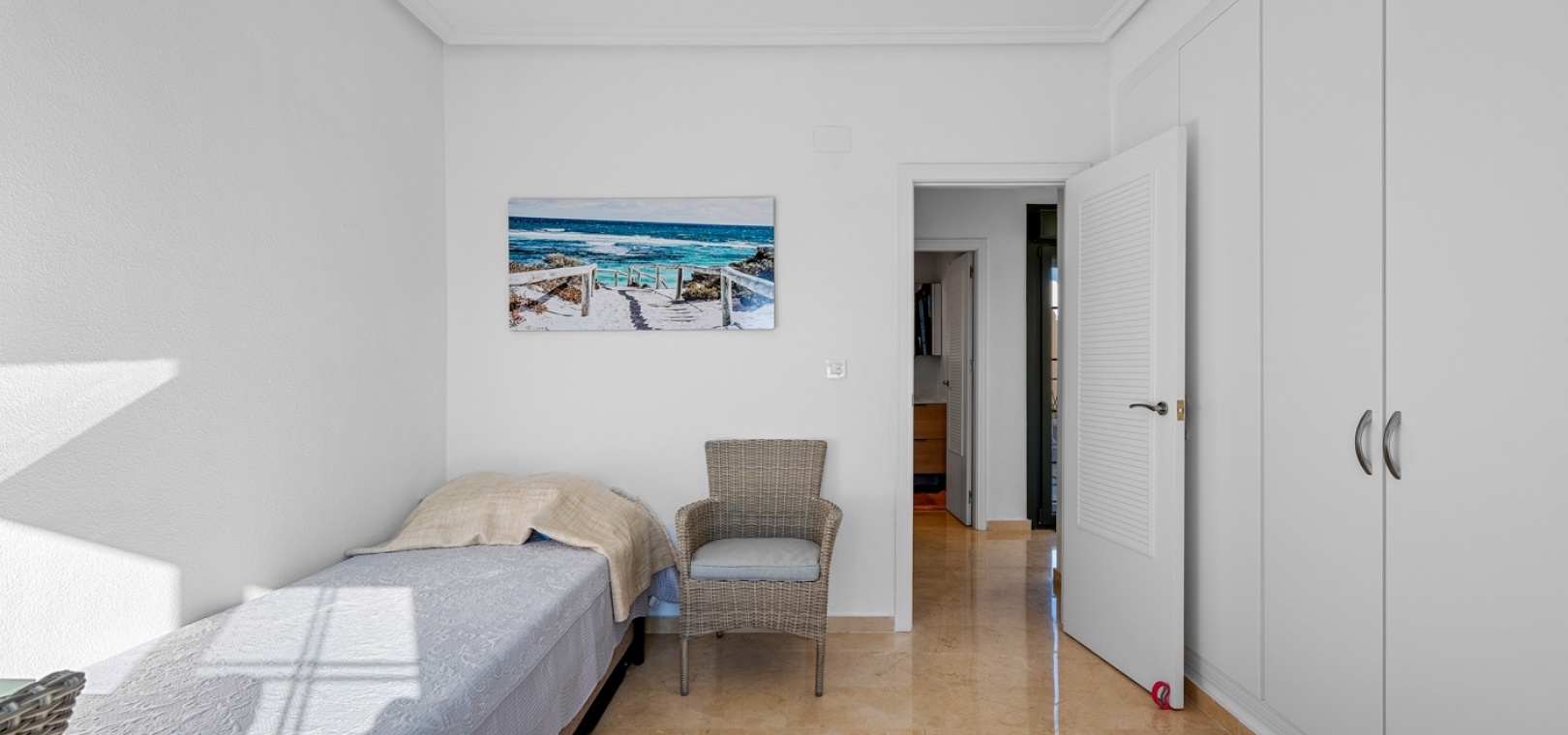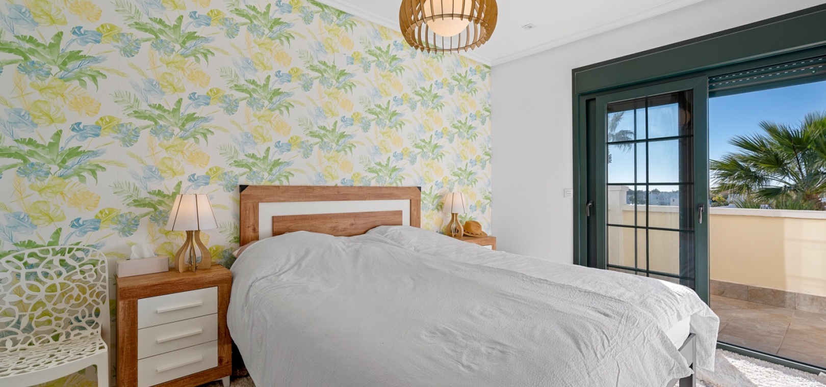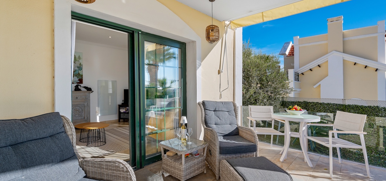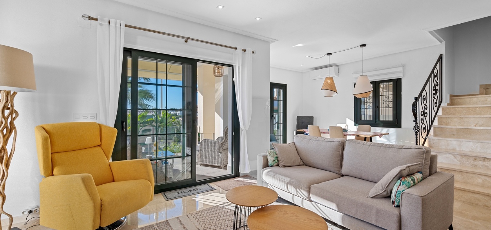 De villa beschikt over drie ruime slaapkamers en twee moderne badkamers , met een aparte, praktische keuken in het hart van de woning – ideaal om te koken in een lichte, goed geventileerde ruimte. De woning is gedeeltelijk gemeubileerd en is voorzien van airconditioning in de woonkamer, verwarmingspanelen en rolluiken voor comfort het hele jaar door.
