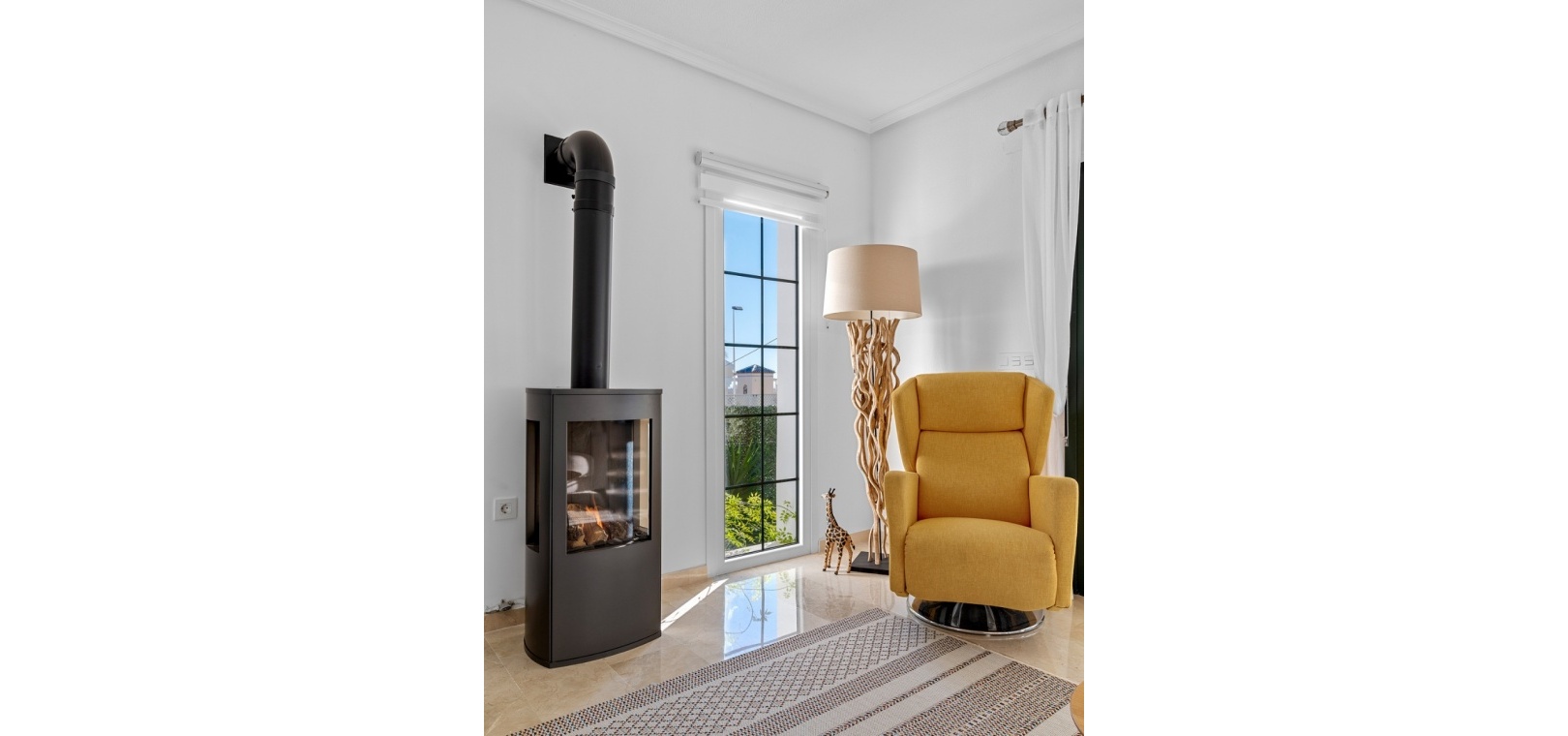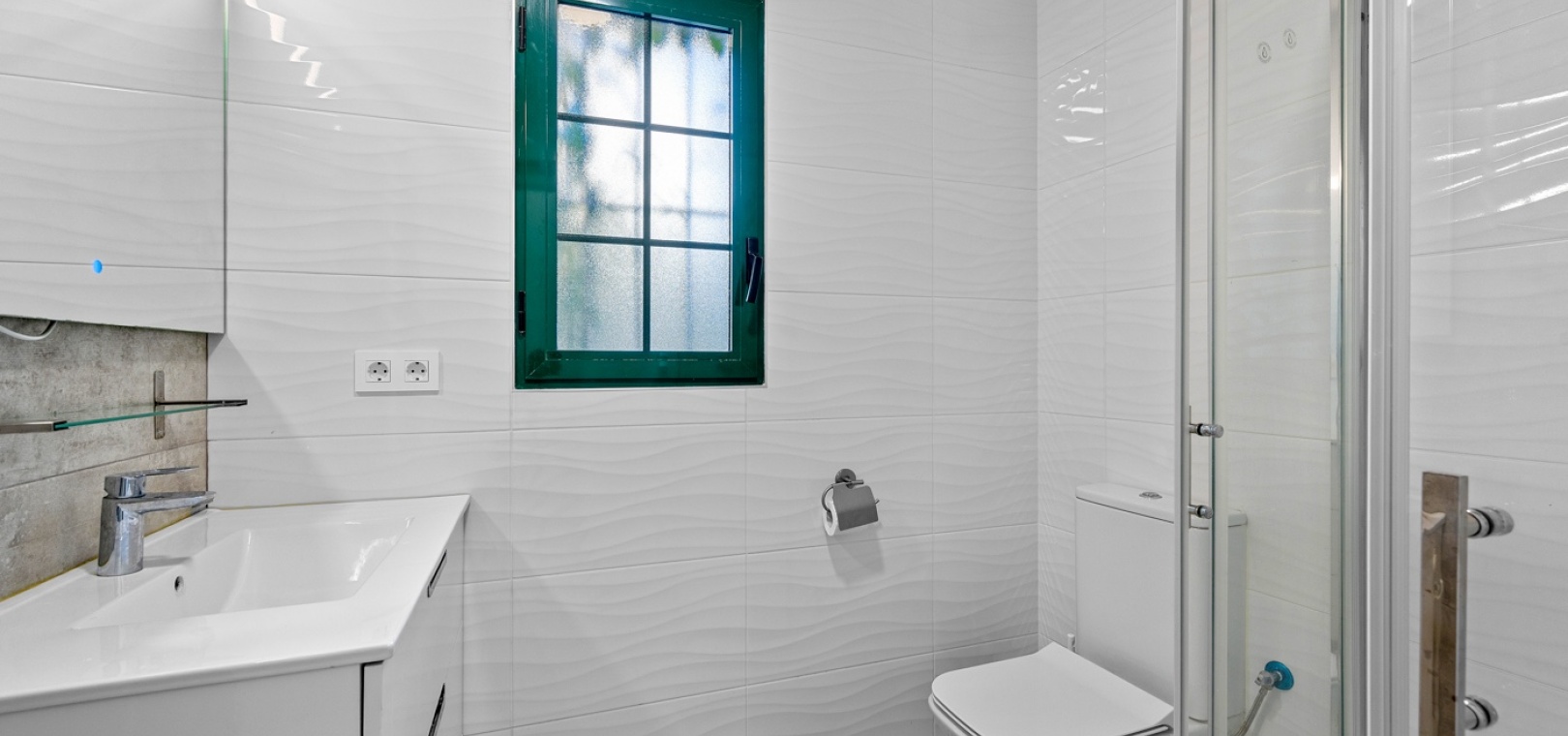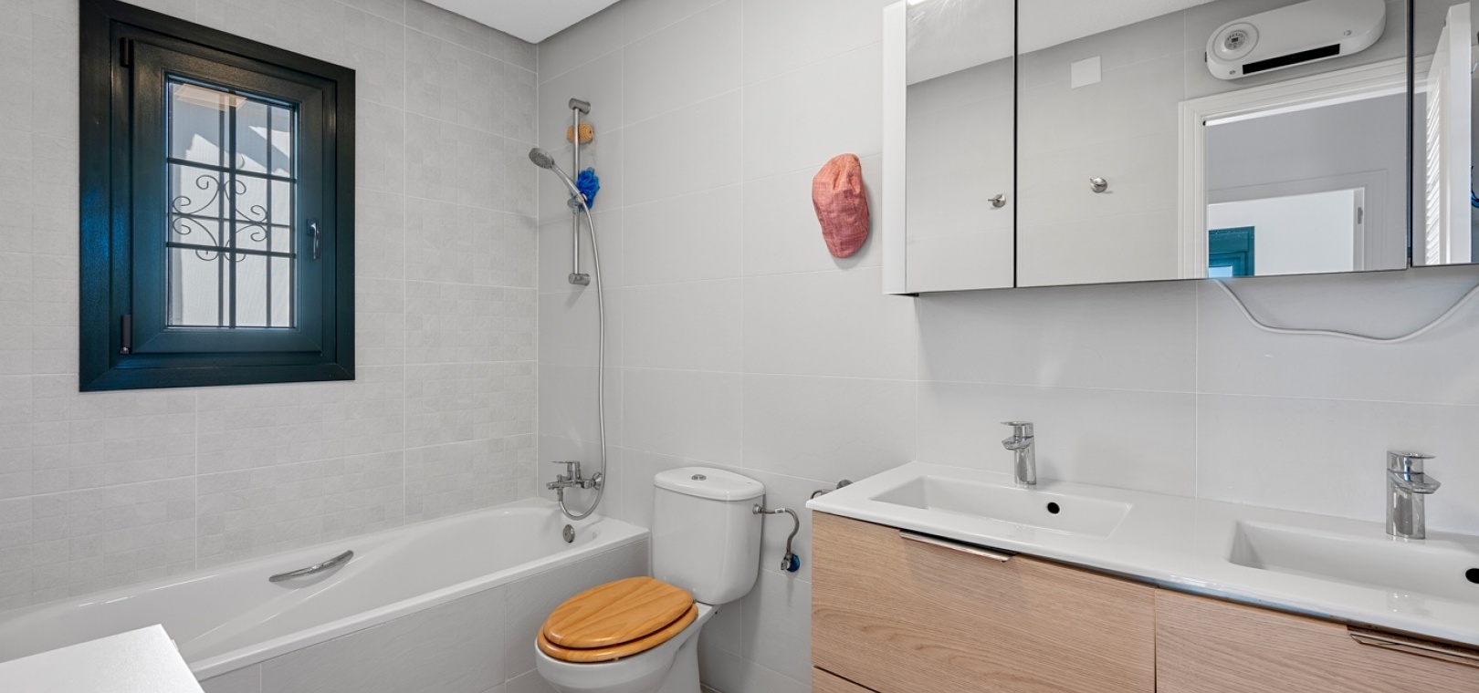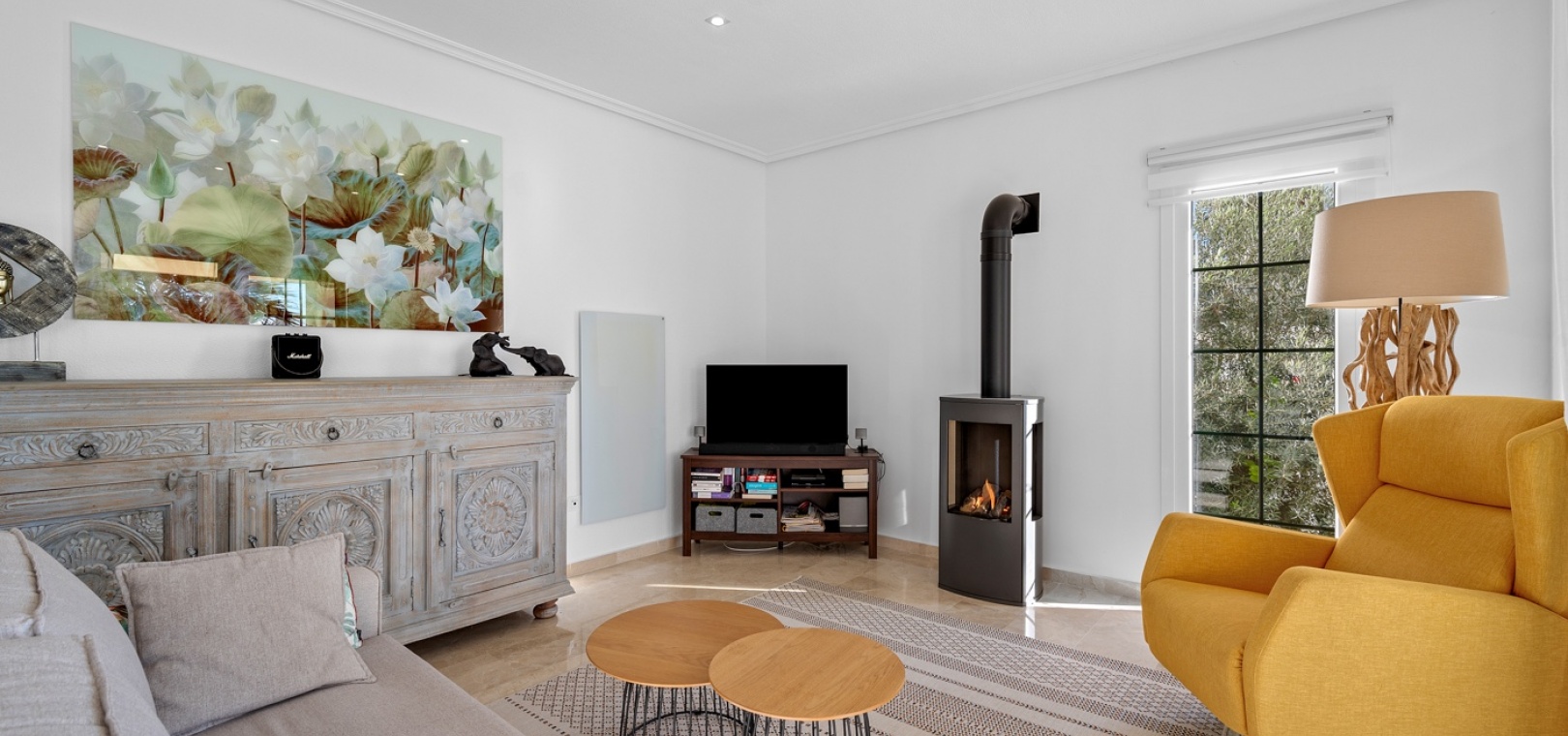 De villa beschikt over drie ruime slaapkamers en twee moderne badkamers , met een aparte, praktische keuken in het hart van de woning – ideaal om te koken in een lichte, goed geventileerde ruimte. De woning is gedeeltelijk gemeubileerd en is voorzien van airconditioning in de woonkamer, verwarmingspanelen en rolluiken voor comfort het hele jaar door.