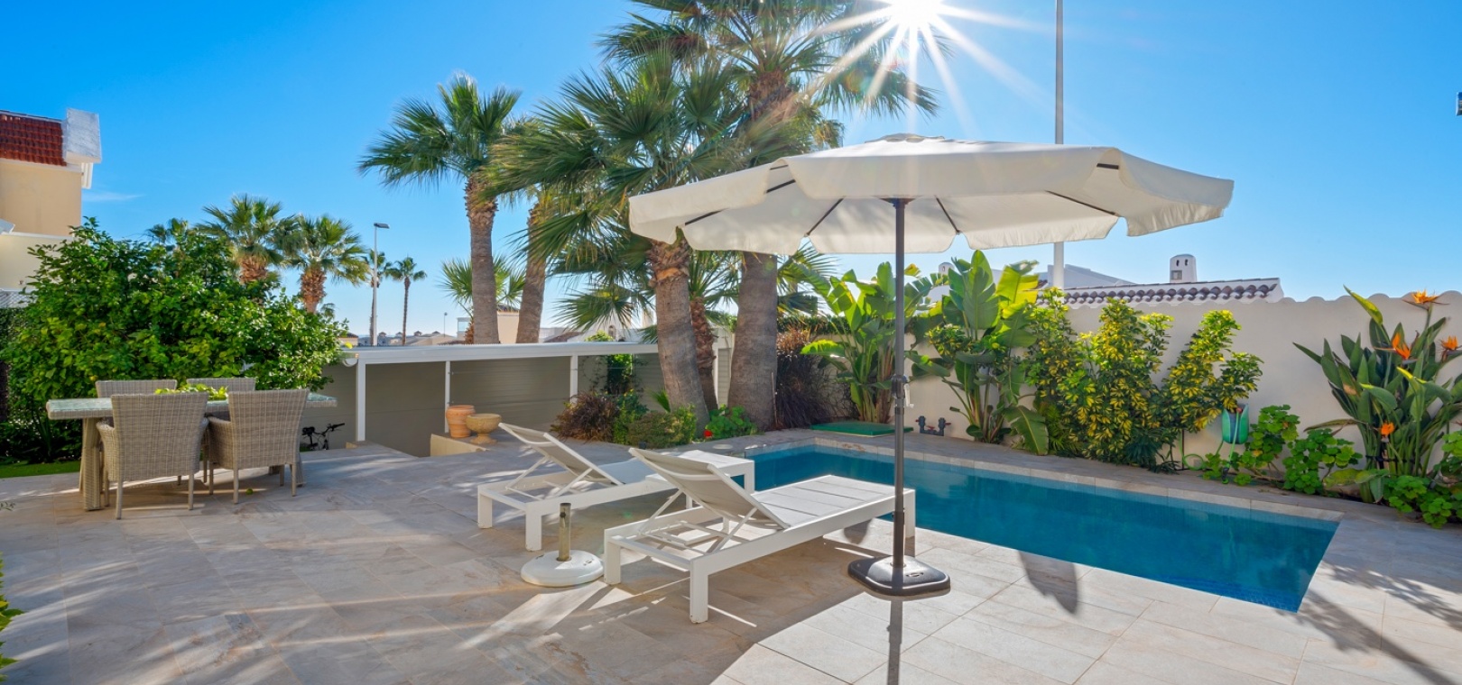 De woning is volledig tot in de puntjes gerenoveerd en beschikt over nieuwe ramen, een nieuw zwembad, een nieuwe keuken en twee volledig gerenoveerde badkamers . De woning is direct klaar om in te trekken en perfect voor permanent wonen of vakantiegebruik .