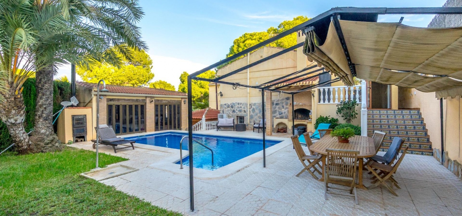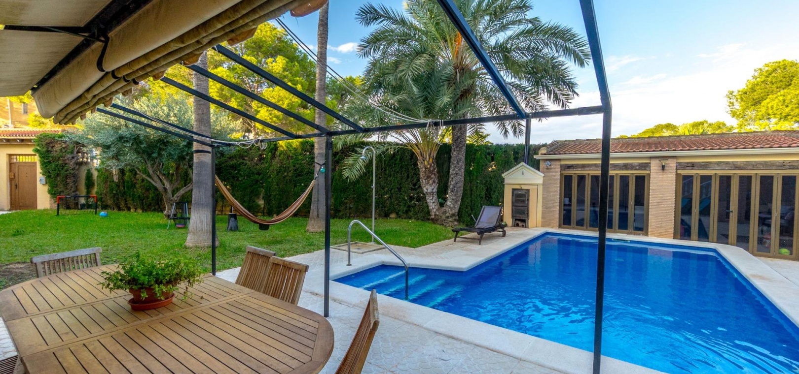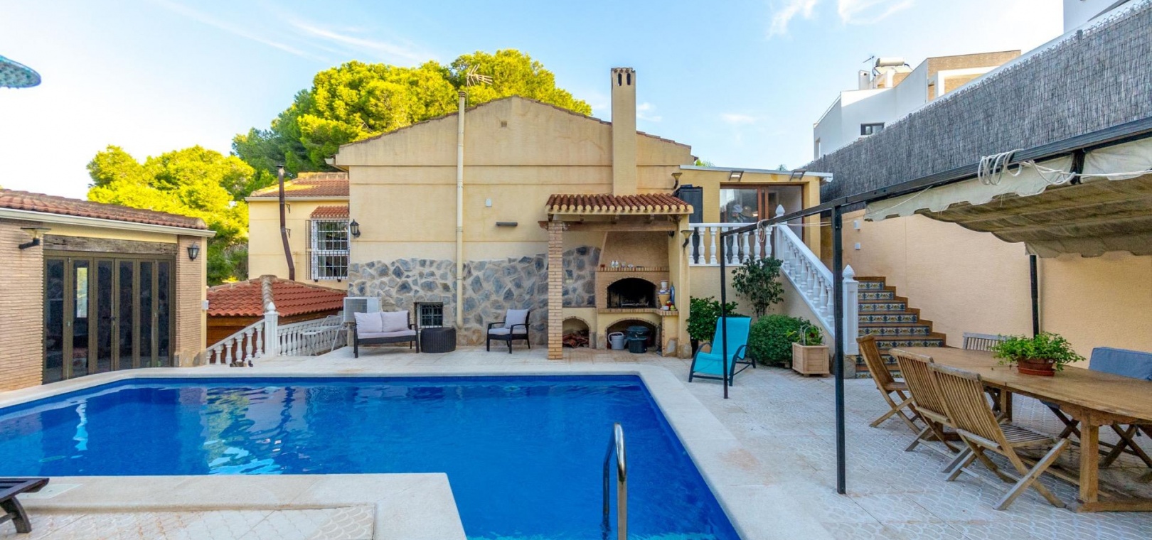 Vrijstaande villa met privézwembad en groot perceel in Los Balcones~~Vrijstaande villa met een ruim perceel, privézwembad en wellnessruimte, ideaal voor permanent wonen.~~De woning heeft een bebouwde oppervlakte van circa 200 m2 en staat op een perceel van meer dan 800 m2, gelegen in de prestigieuze woonwijk Los Balcones – een rustige en goed bereikbare wijk van Torrevieja.~~De villa biedt drie slaapkamers en drie complete badkamers, evenals een lichte woonkamer en een aparte keuken. Alle kamers zijn voorzien van radiatorverwarming (dieselketel) en airconditioning via split-units.~~Buiten beschikt de villa over een grote tuin met een privézwembad, een serre en een sauna – perfect voor ontspanning en comfort.~~Er is tevens een afgesloten garage met ruimte voor twee auto's.~~Een goed onderhouden en complete woning die privacy, ruimte en uitstekende kwaliteit biedt, ideaal als permanente woning of als vakantiehuis.