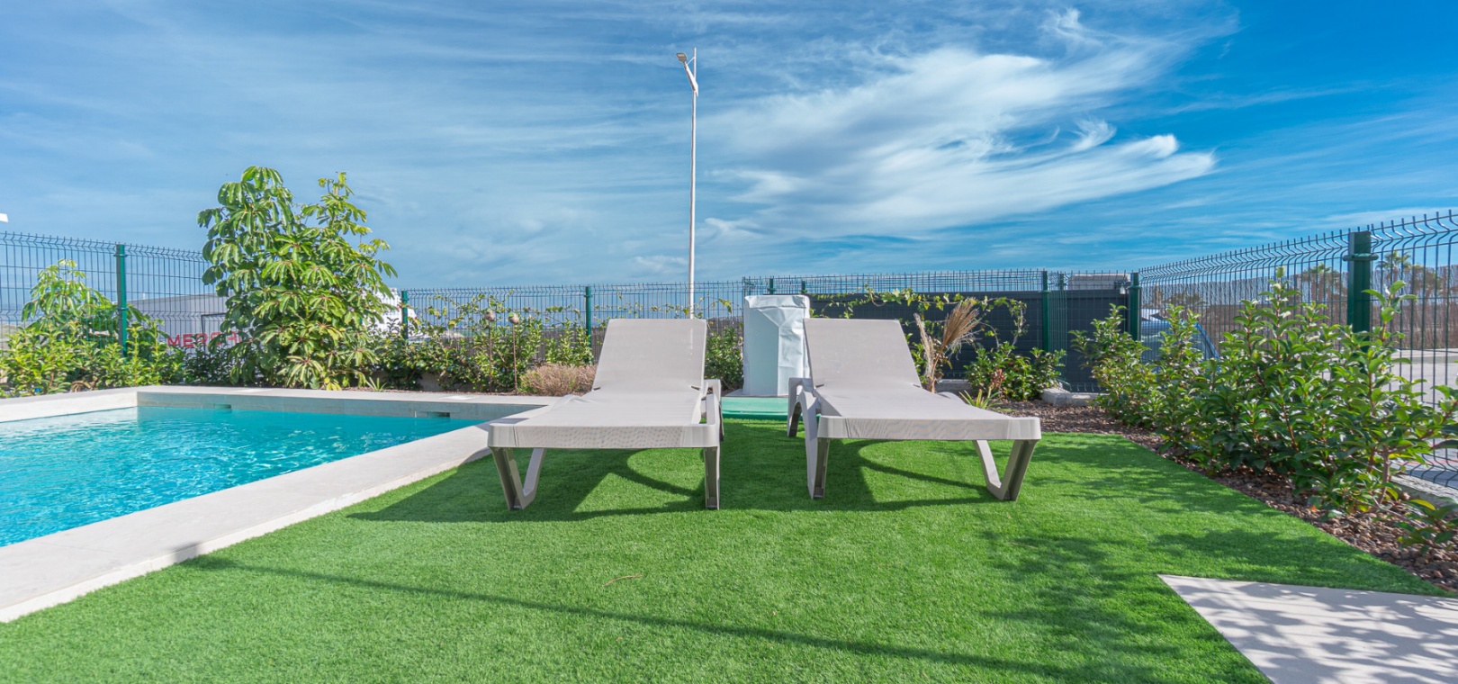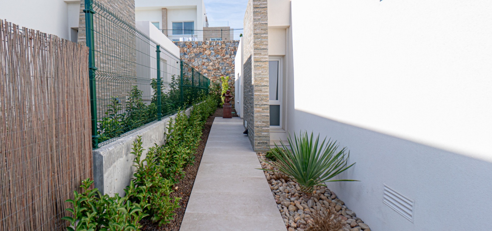 De buitenruimte is onderhoudsvriendelijk, met een zonnig terras aan de voorzijde dat deels schaduw biedt, ideaal voor buiten dineren. Daarnaast is er een zomerse buitenkeuken of bar, perfect voor gezellige avonden. Natuurlijk is er ook een privézwembad en afgesloten oprit met elektrisch hek.