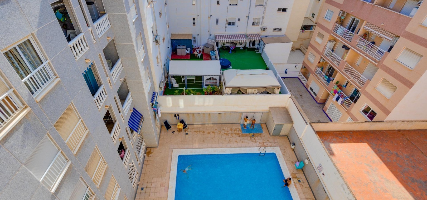 Binnenin beschikt de studio over een moderne, volledig uitgeruste open keuken, ontworpen voor praktisch en plezierig koken. De strategische ligging zorgt ervoor dat u zich op slechts 400 meter van de gouden stranden bevindt, waardoor u gemakkelijk toegang heeft tot de zee en de ideale omgeving heeft voor zonovergoten dagen aan de Costa Blanca.