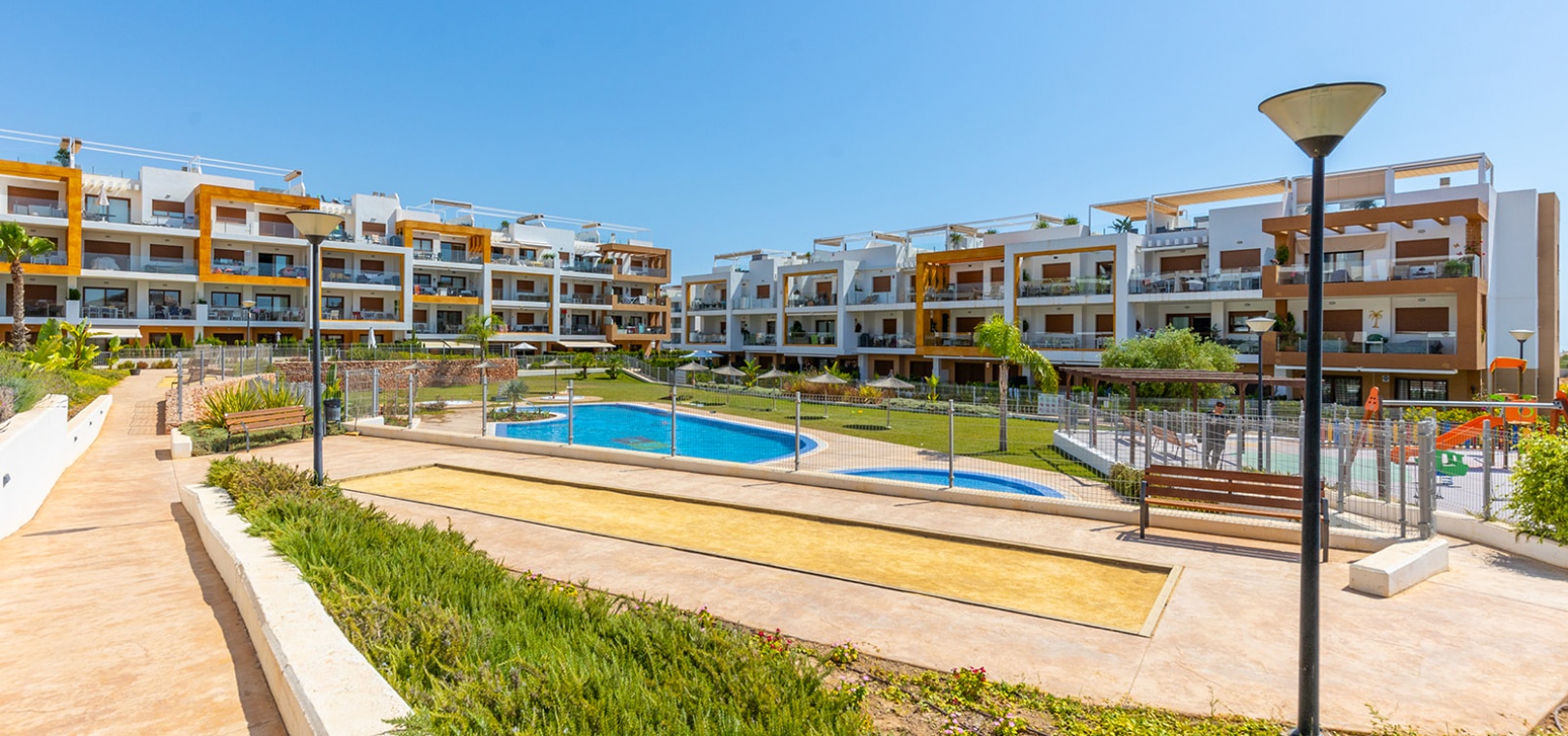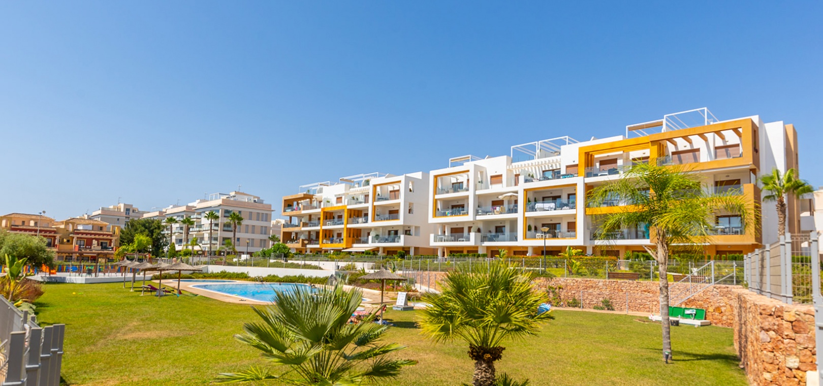 Villamartin is een prestigieuze locatie, bekend om zijn uitstekende service en voorzieningen, perfect gelegen tussen gerenommeerde golfbanen en de zee. Op korte afstand ligt La Zenia Boulevard, het grootste winkelcentrum in de provincie Alicante. Nabijgelegen golfbanen zijn onder andere de golfbaan Villamartin, Real Club de Golf Campoamor en de golfbaan Las Ramblas. Het gebied is omgeven door scholen, winkels, restaurants, apotheken en bushaltes, waardoor het ideaal is om het hele jaar door te wonen. Goede verbindingen met de nationale weg N-332 en de mediterrane snelweg AP-7 zorgen voor moeiteloos reizen door de regio.