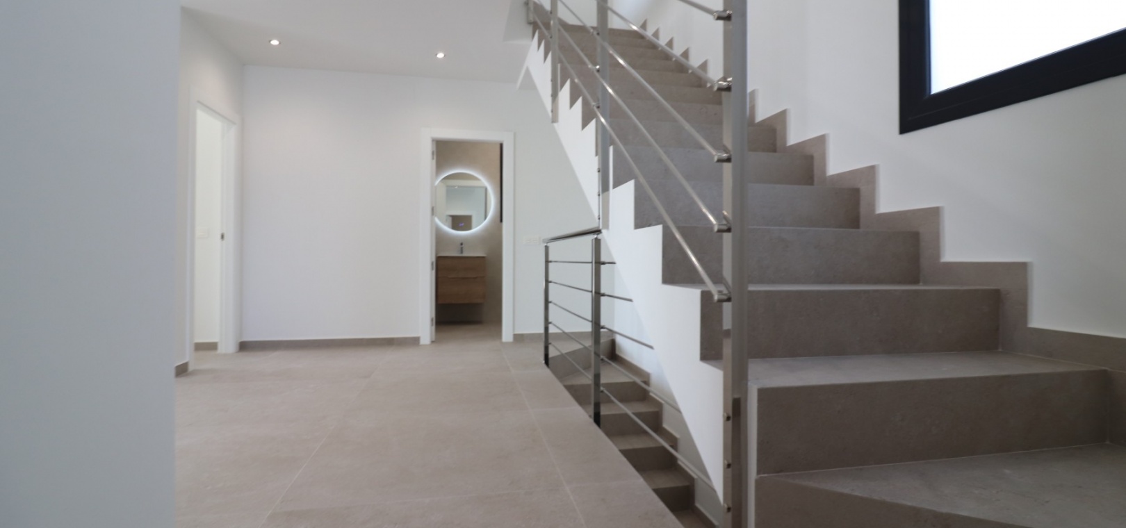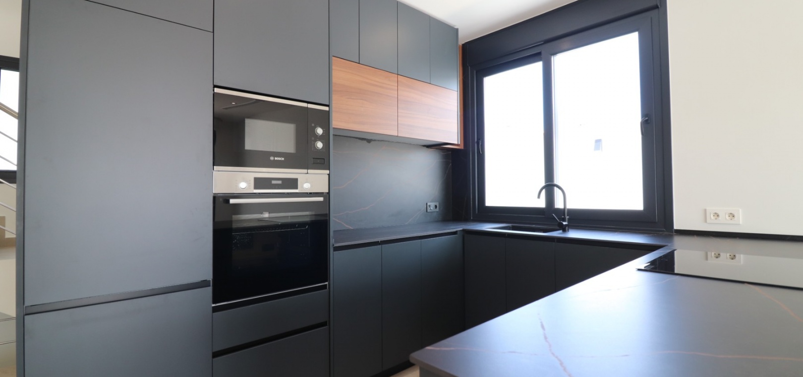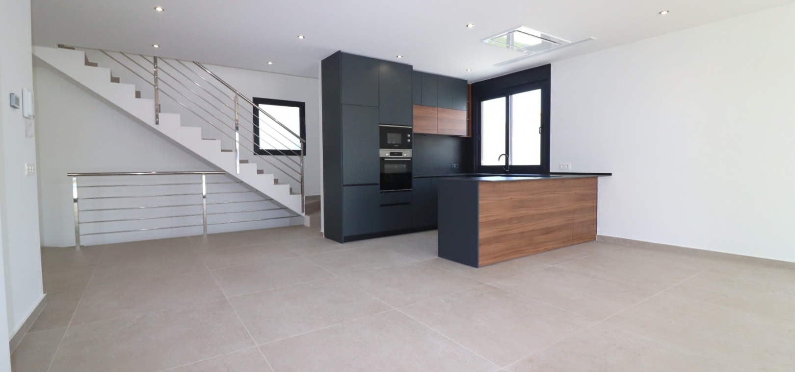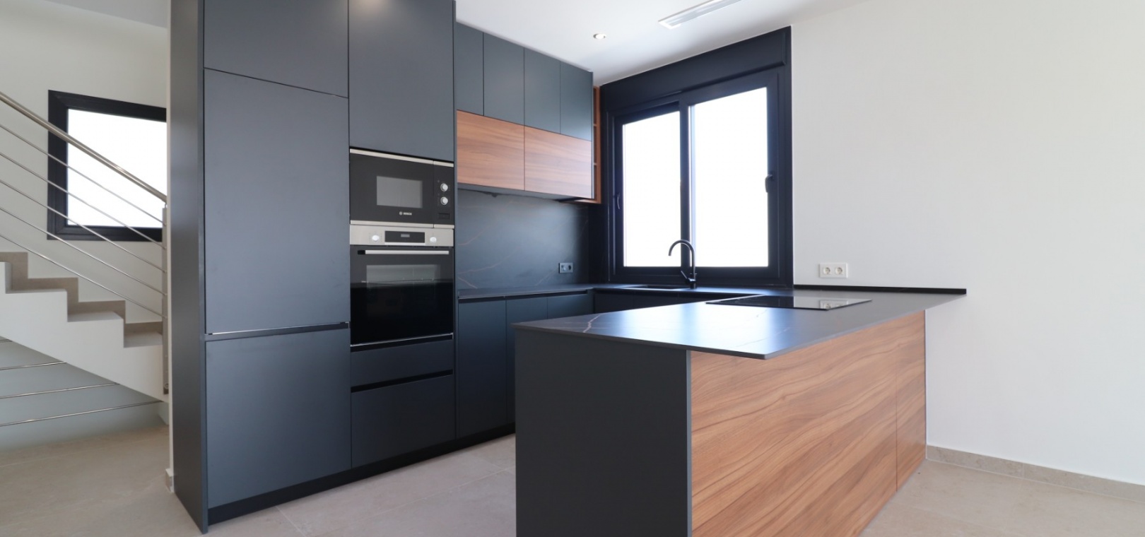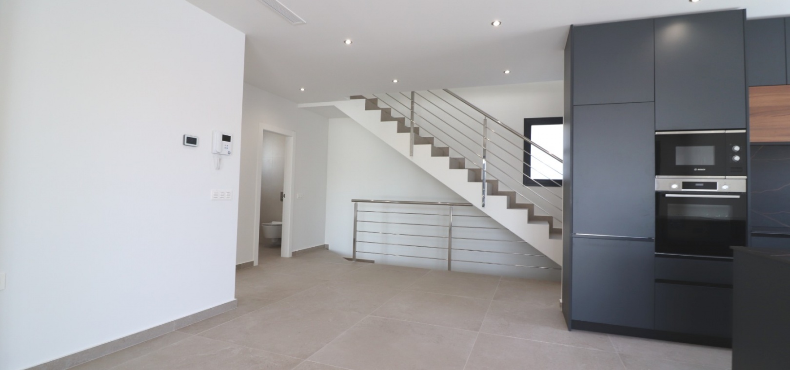 Sleutelklaar en instapklaar 311 m² bebouwd over drie verdiepingen op een privéperceel van 550 m² Drie tweepersoonsslaapkamers, elk met een eigen badkamer met douche Extra gastentoilet op de begane grond Lichte, open woon- en eetkamer met grote schuifdeuren Moderne ingerichte keuken met aparte bijkeuken Vloerverwarming door het hele huis met individuele kamerthermostaten Geïntegreerde airconditioning Voorinstallatie voor zonnepanelen en opladen elektrische auto's Ruim boventerras met directe toegang vanuit de slaapkamers Privézwembad van 8 x 4 meter Aangelegde, onderhoudsarme tuin met kunstgras en verhoogde plantenbakken Veilig, ommuurd perceel met elektrische opritpoort Grote onderbouw met interne toegang en ruimte voor meerdere voertuigen of verdere ontwikkeling