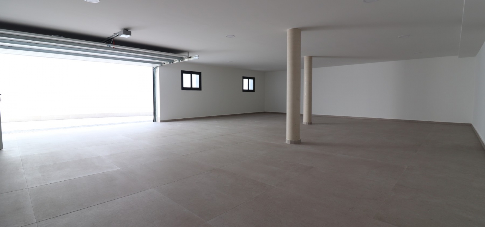 Een solide elektrische poort biedt toegang tot een eigen oprit die leidt naar de ruime kelder. Deze ruimte biedt comfortabel plaats aan twee of meer voertuigen of kan worden omgebouwd tot extra woonruimte, zoals een fitnessruimte, kantoor of gastenverblijf. Een interne trap biedt directe toegang vanuit de kelder tot de woonkamer.