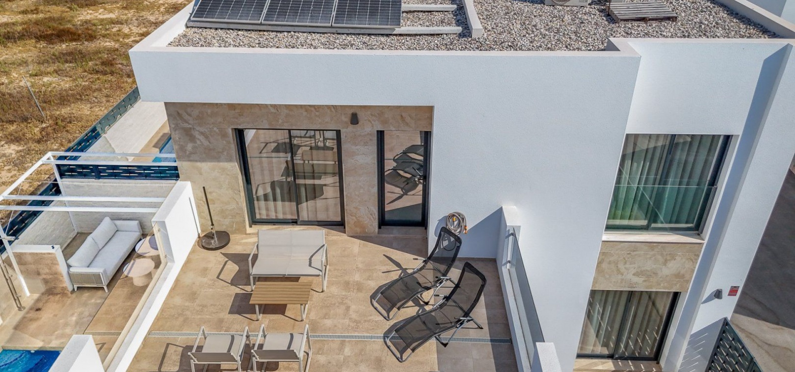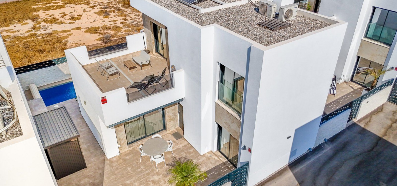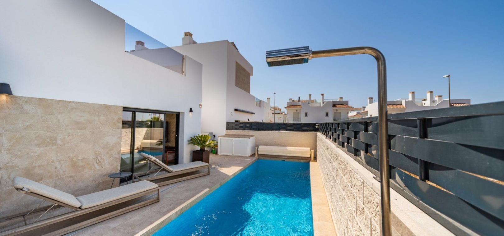 3 slaapkamers, 2 badkamers + gastentoilet Verwarmd privézwembad (7x2,5 m) Ruime woon-eetkamer met open keuken Hoofdslaapkamer met en-suite badkamer Terras op de bovenverdieping Zonnepanelen en elektrische luifel Centrale airconditioning per verdieping Opslagruimte Hoogwaardig meubilair Uitstekende staat, bouwjaar 2024 Privé en rustige woonwijk