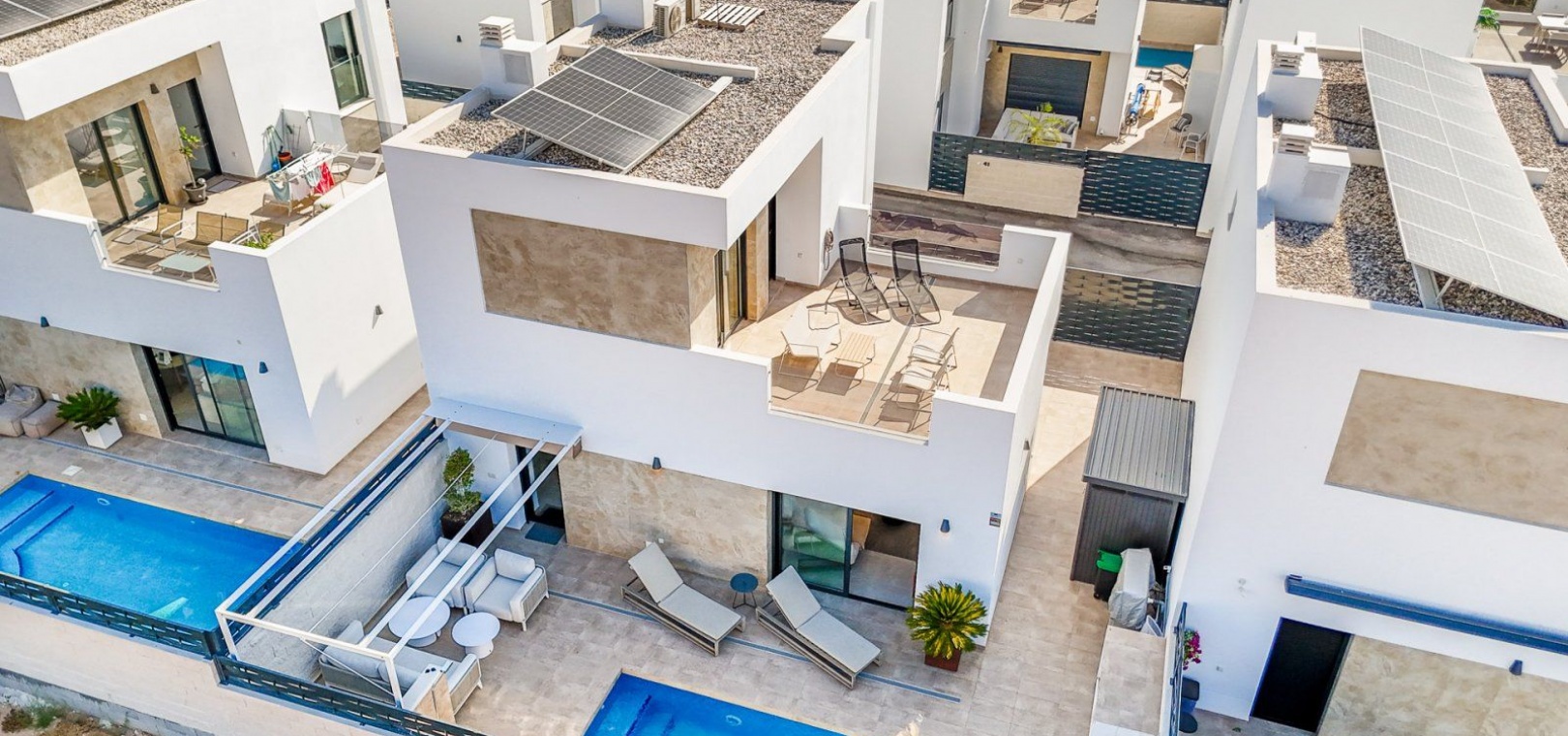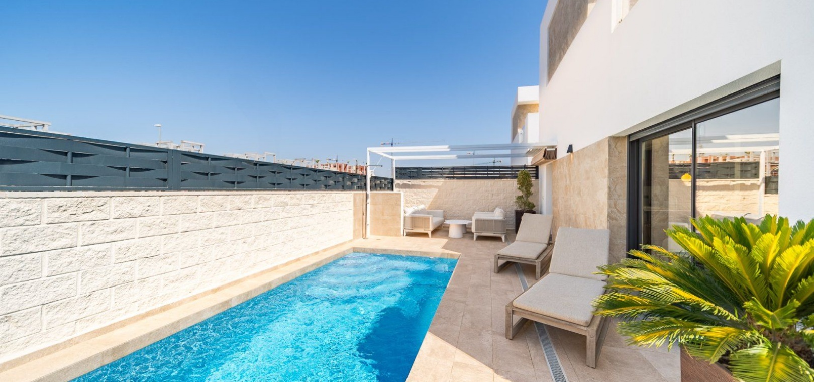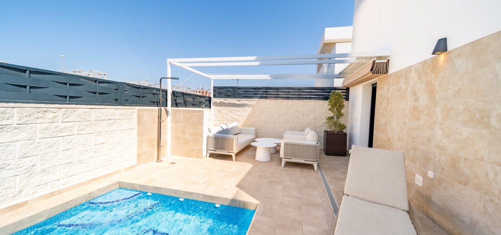 3 slaapkamers, 2 badkamers + gastentoilet Verwarmd privézwembad (7x2,5 m) Ruime woon-eetkamer met open keuken Hoofdslaapkamer met en-suite badkamer Terras op de bovenverdieping Zonnepanelen en elektrische luifel Centrale airconditioning per verdieping Opslagruimte Hoogwaardig meubilair Uitstekende staat, bouwjaar 2024 Privé en rustige woonwijk