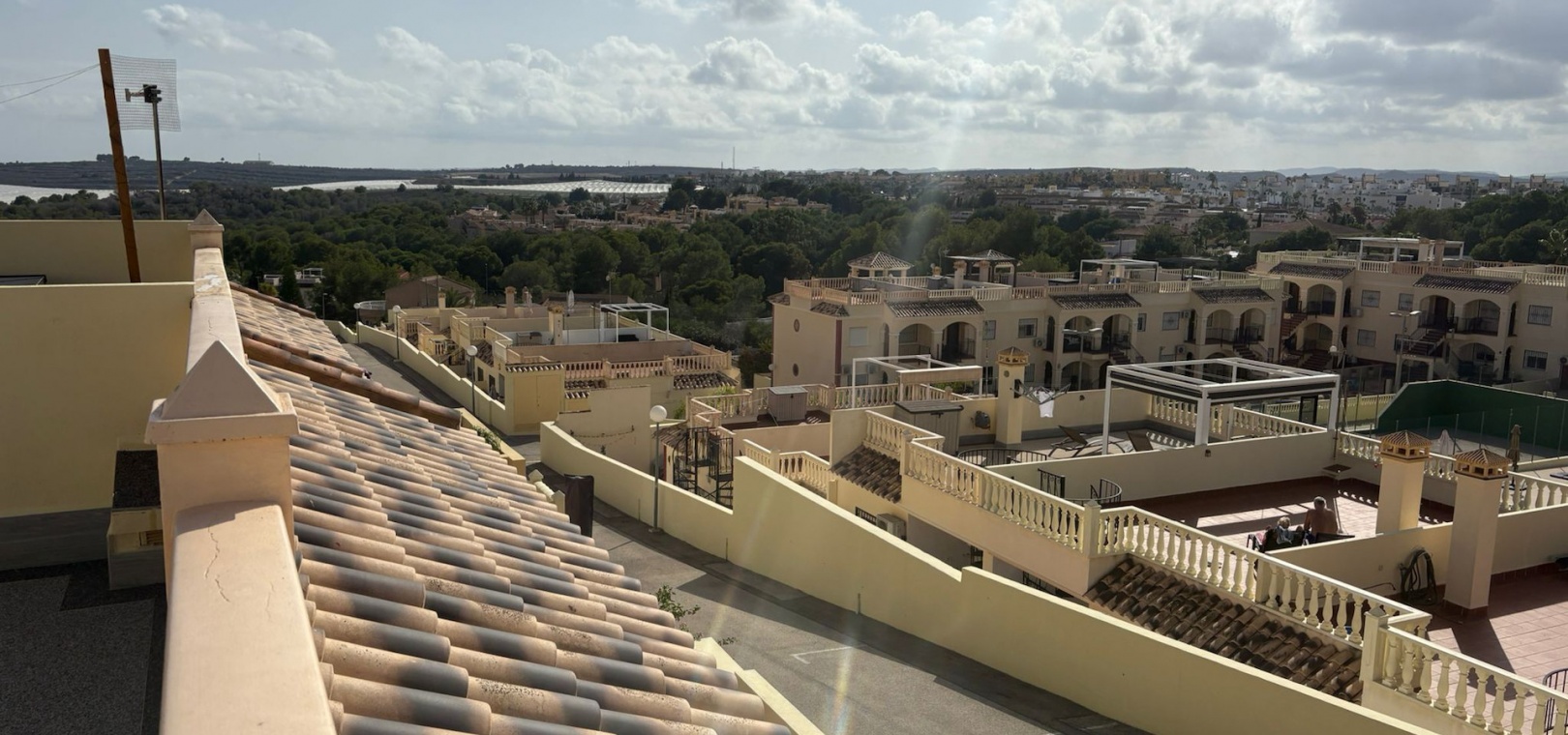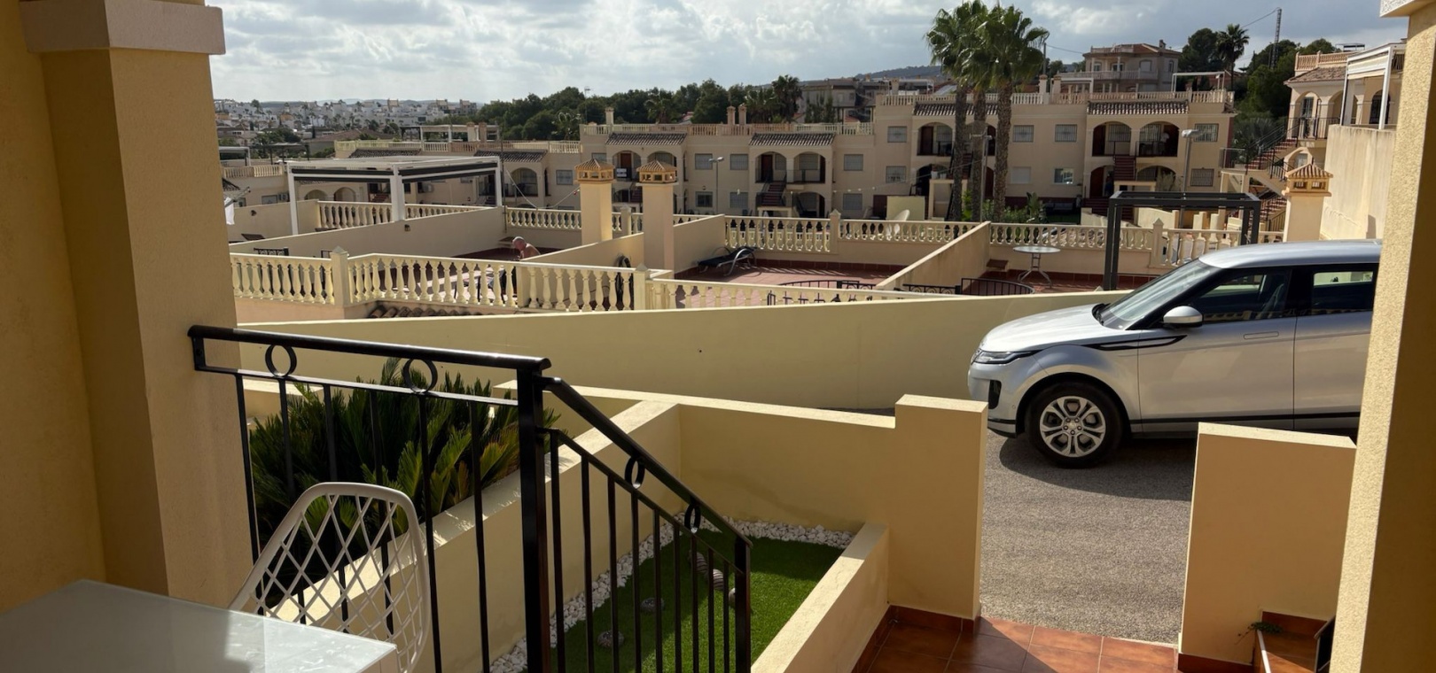 De woning ligt in een beveiligde, afgesloten woonwijk en bewoners kunnen hier ook gebruikmaken van gemeenschappelijke parkeergelegenheid, een zwembad en een tennisbaan .
