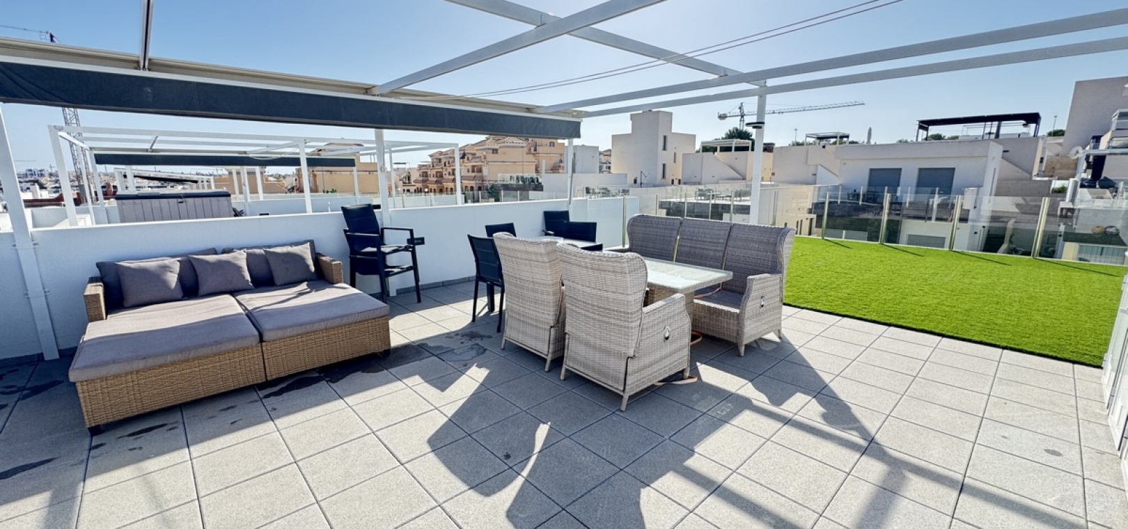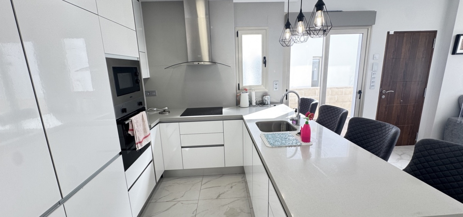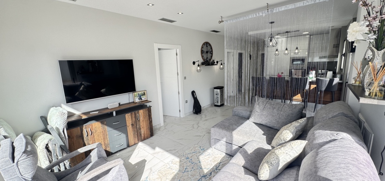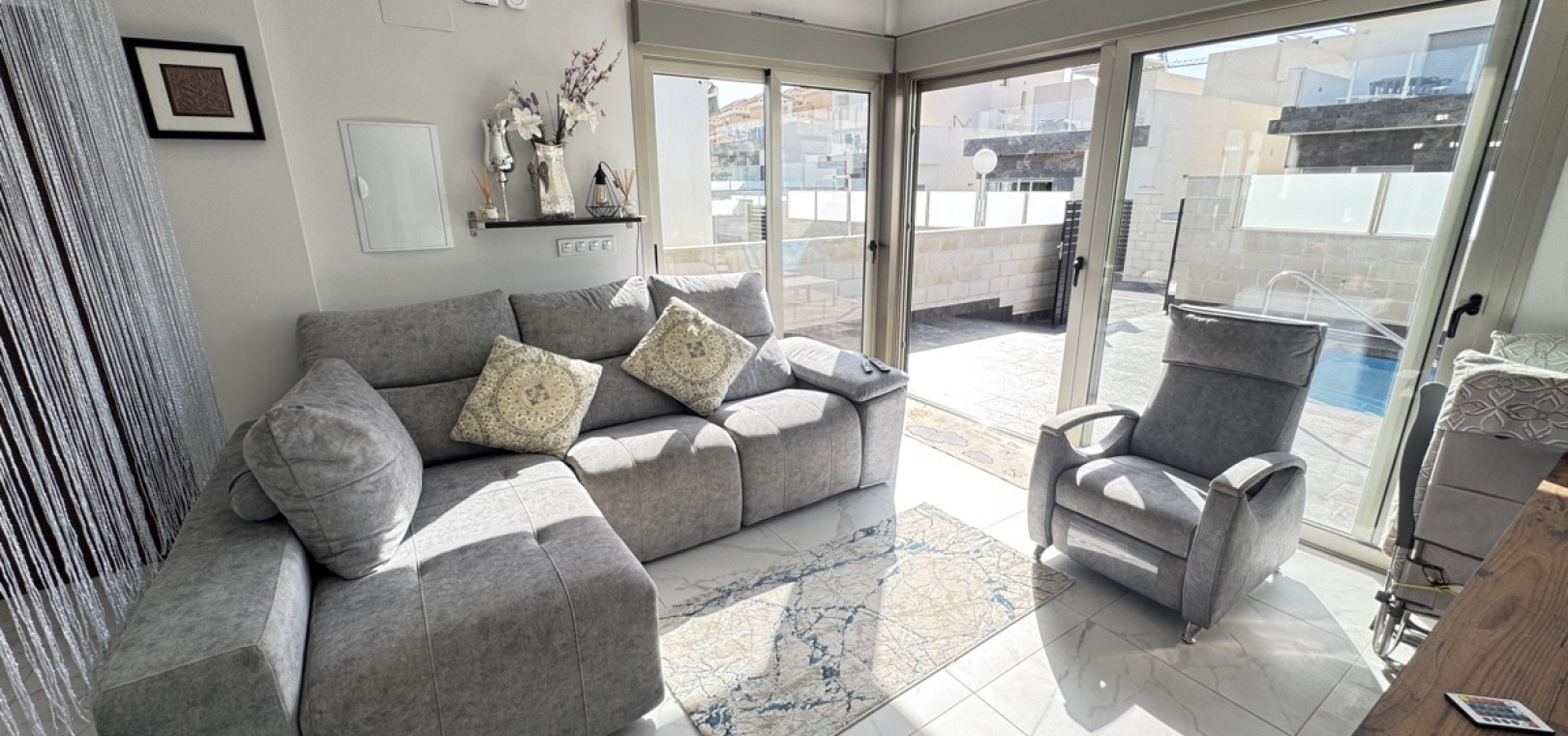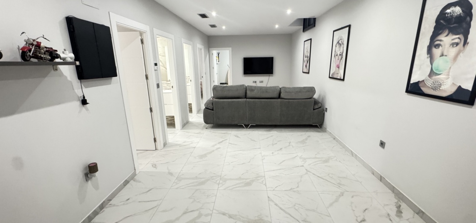 Ruime onderbouw – Inclusief 2 slaapkamers, 2 badkamers, een woonkamer en een bijkeuken – ideaal voor gasten, familie of om een eigen suite te creëren. Privézwembad en tuinen – Geniet van zonnige dagen en ontspan bij uw zwembad, omringd door prachtig aangelegde tuinen. Groot dakterras – Geniet van het adembenemende panoramische uitzicht op de roze meren van Torrevieja , een werkelijk unieke natuurlijke omgeving. Buitenkeuken en barbecueplek – Ideaal om gasten te ontvangen en te genieten van het buitenleven. Licht en luchtig ontwerp – Overvloedig natuurlijk licht vult elke hoek van dit moderne huis. Open woonkamer – Een ruime woonkamer en eetkamer sluiten naadloos aan op een strakke, volledig uitgeruste moderne keuken.
