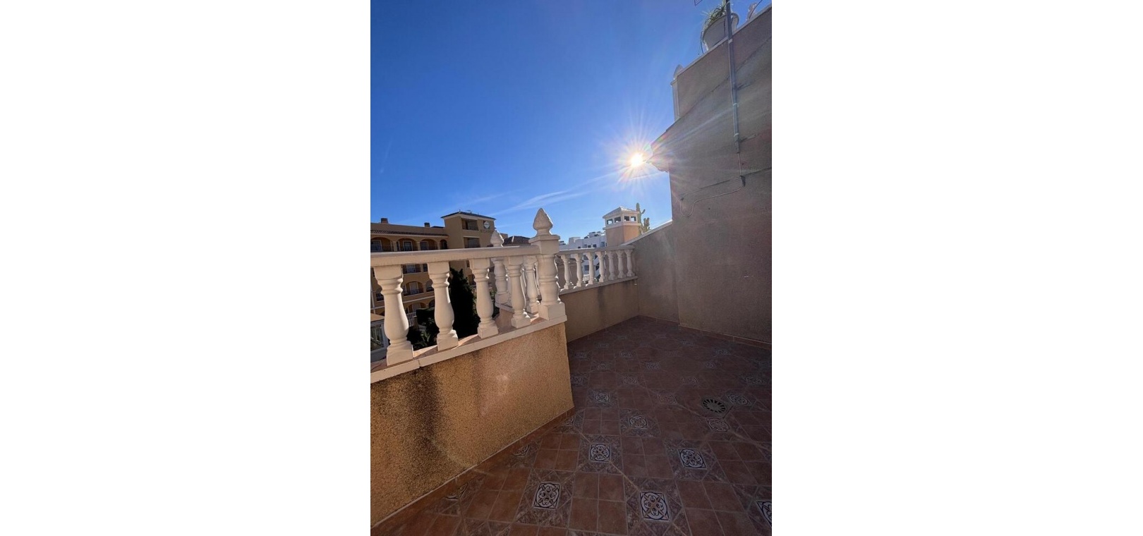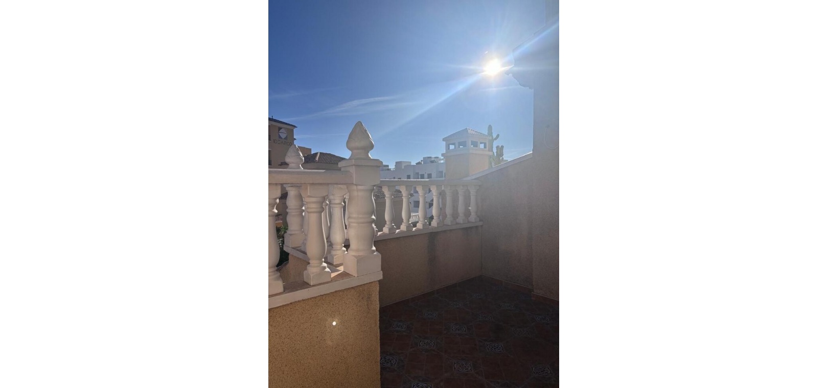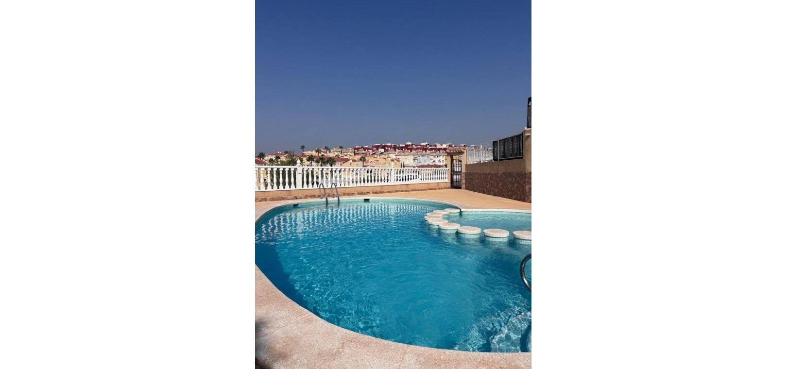 Deze fraaie woning met twee slaapkamers is gelegen in een beveiligde, afgesloten woonwijk in de gewilde wijk Villamartin. De woning beschikt over een terras aan de voorzijde dat geniet van de ochtendzon, ideaal om te ontspannen met een kopje koffie of ontbijt in de buitenlucht.