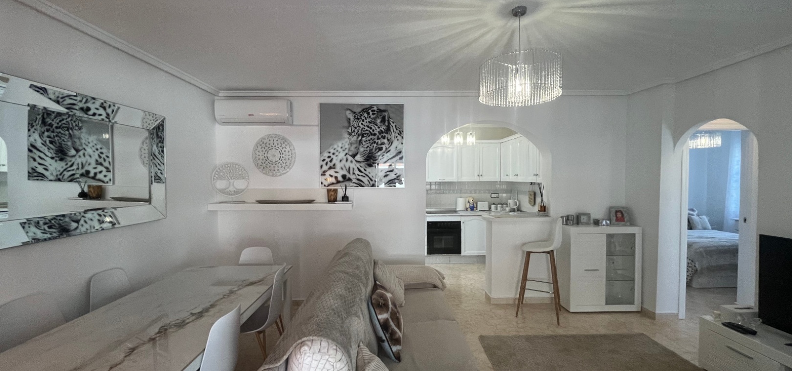 Deze bungalow ligt vlak bij lokale voorzieningen, stranden, restaurants en supermarkten en combineert comfort, gemak en uitstekende buitenruimte in een van de populairste kustgebieden van de Costa Blanca.