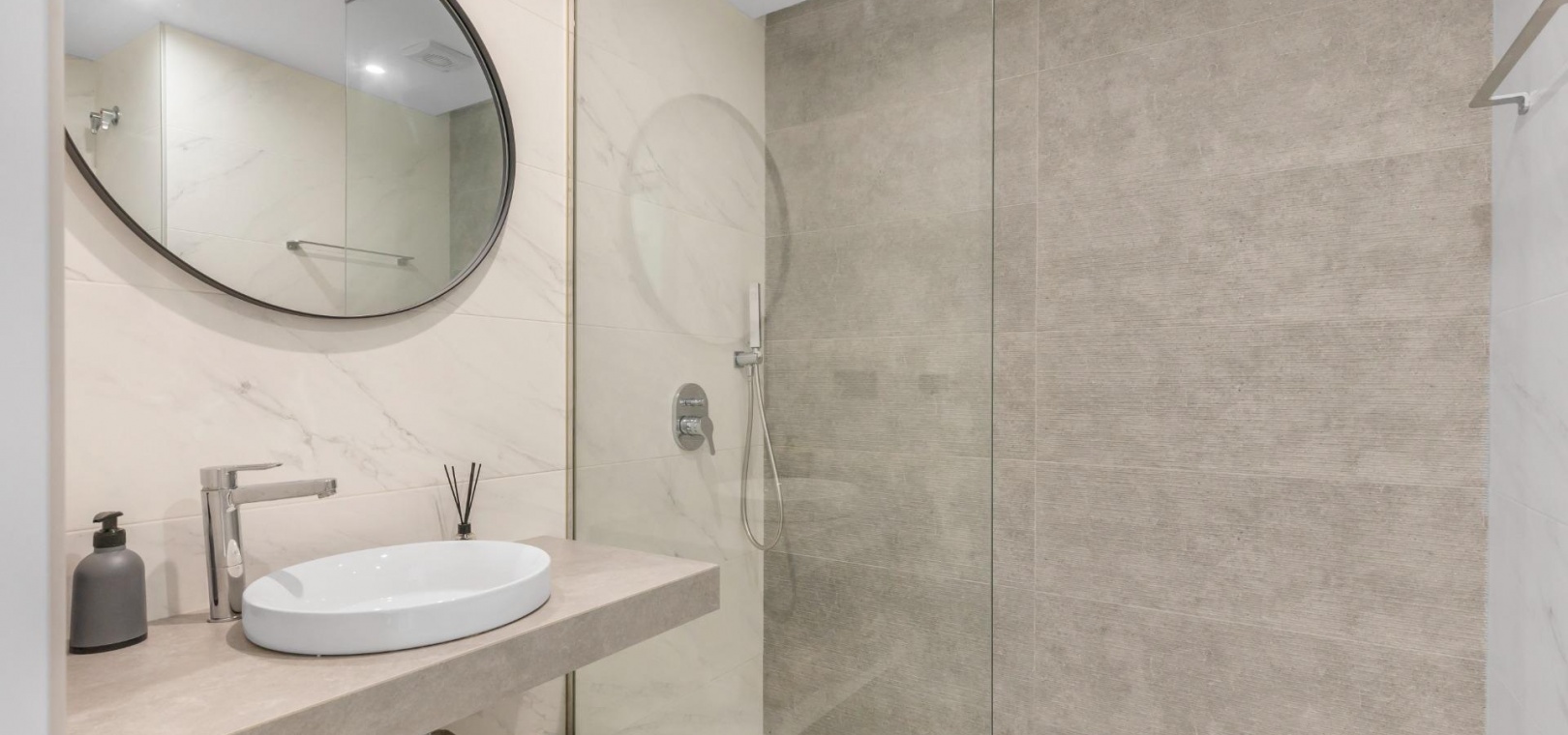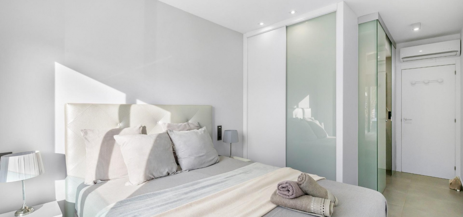 De woning beschikt over twee slaapkamers en twee complete badkamers, waarvan één en-suite, en is licht en praktisch ingedeeld dankzij de westoriëntatie. De ruime woonkamer komt uit op een ruim terras met prachtig uitzicht op de groene gemeenschappelijke ruimtes en het spectaculaire zwembad.