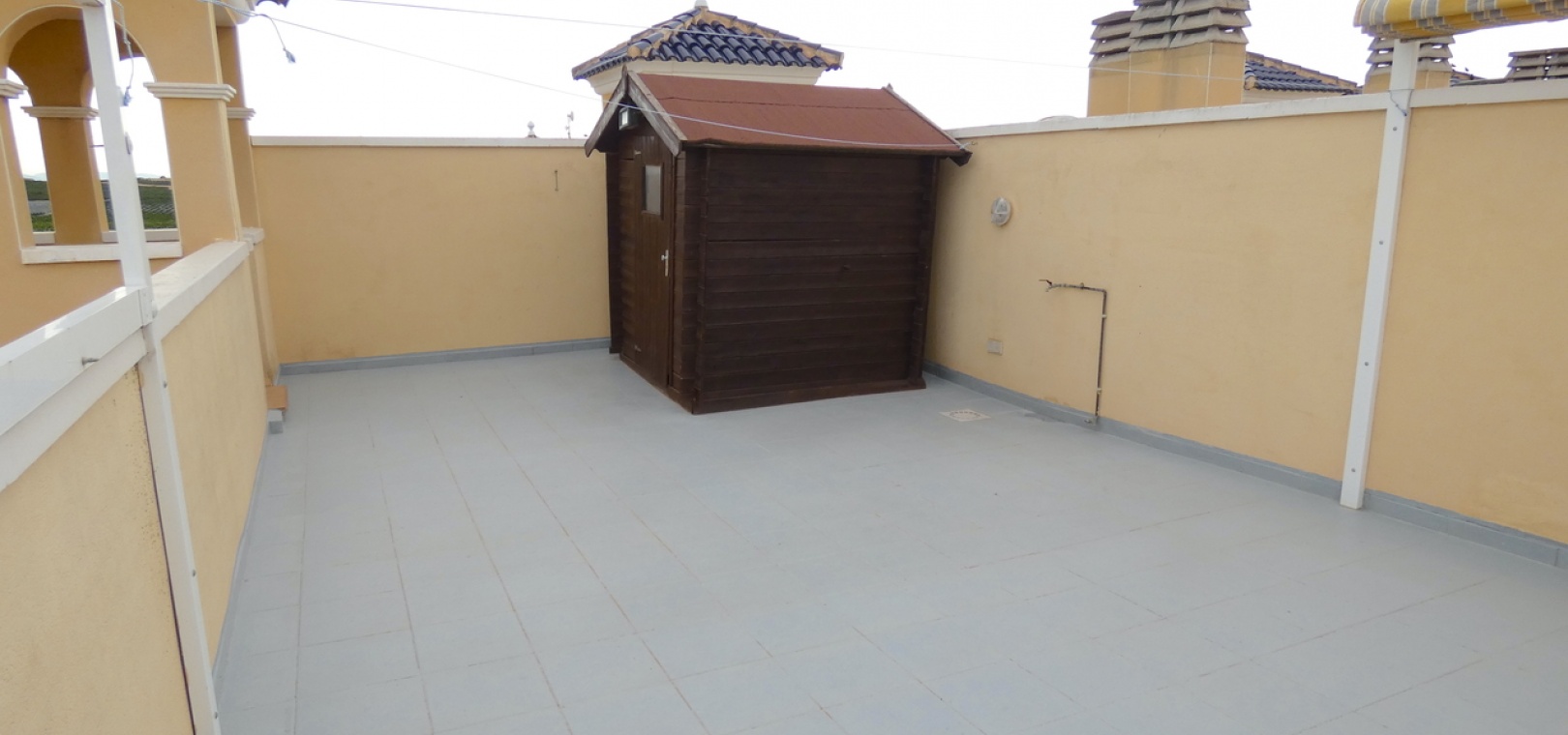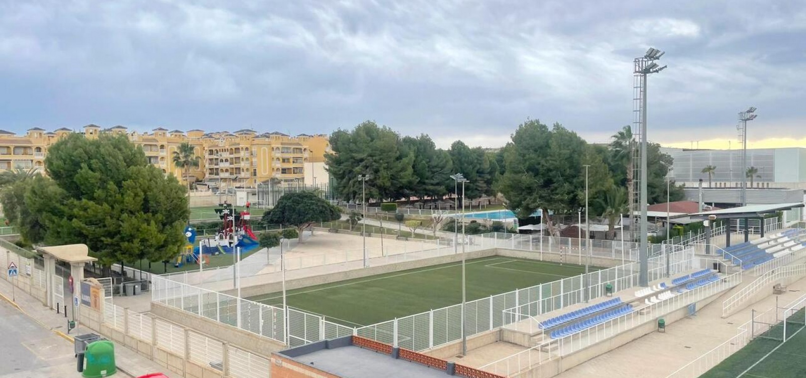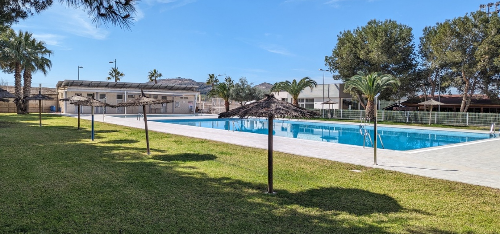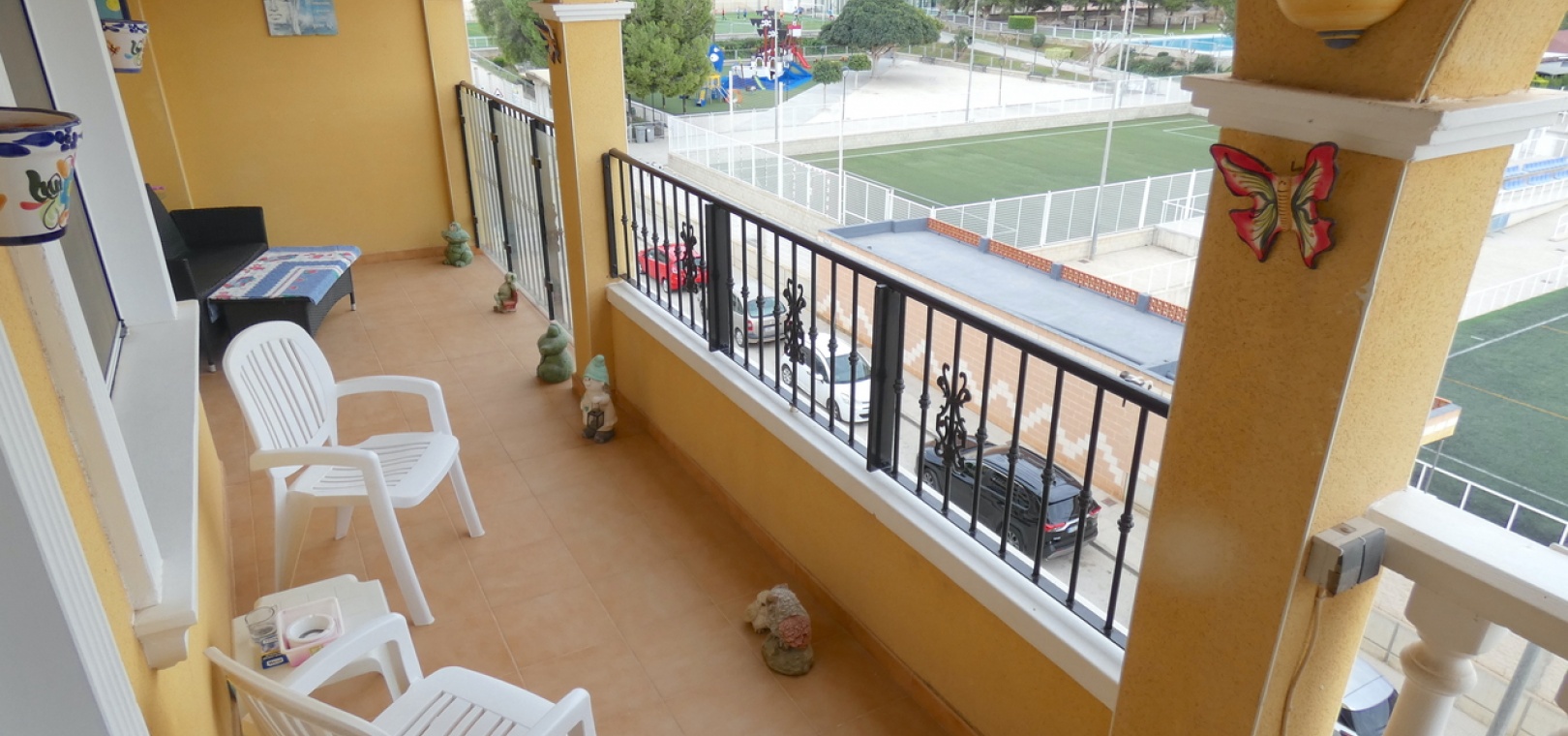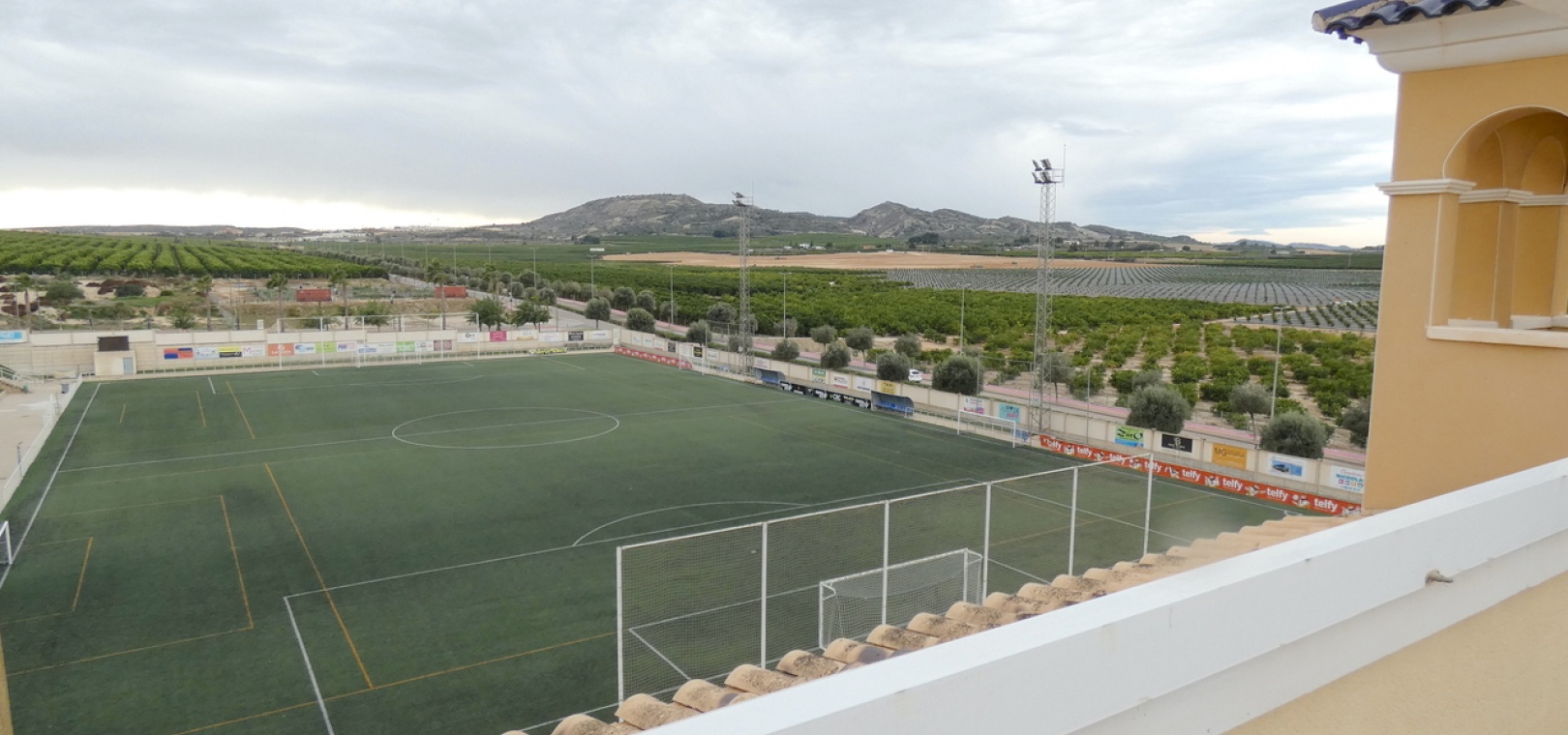 Een van de absolute hoogtepunten is het grote, privésolarium met panoramisch uitzicht over het omliggende landbouwlandschap, inclusief uitgestrekte sinaasappel- en citroenboomgaarden, en een direct zicht op het sportcentrum en het voetbalveld. Het solarium is op het zuiden gericht en geniet daardoor de hele dag van de zon, ideaal om te ontspannen of gasten te ontvangen.
