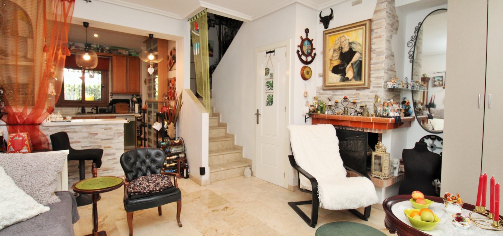 Deze fraai gepresenteerde herenwoning in Sofía-stijl is gelegen in de zeer gewilde wijk R9, Pau 8 in Villamartin , binnen een beveiligde, afgesloten woonwijk en op slechts 10 minuten lopen van Villamartin Plaza en de Villamartin Golfbaan .