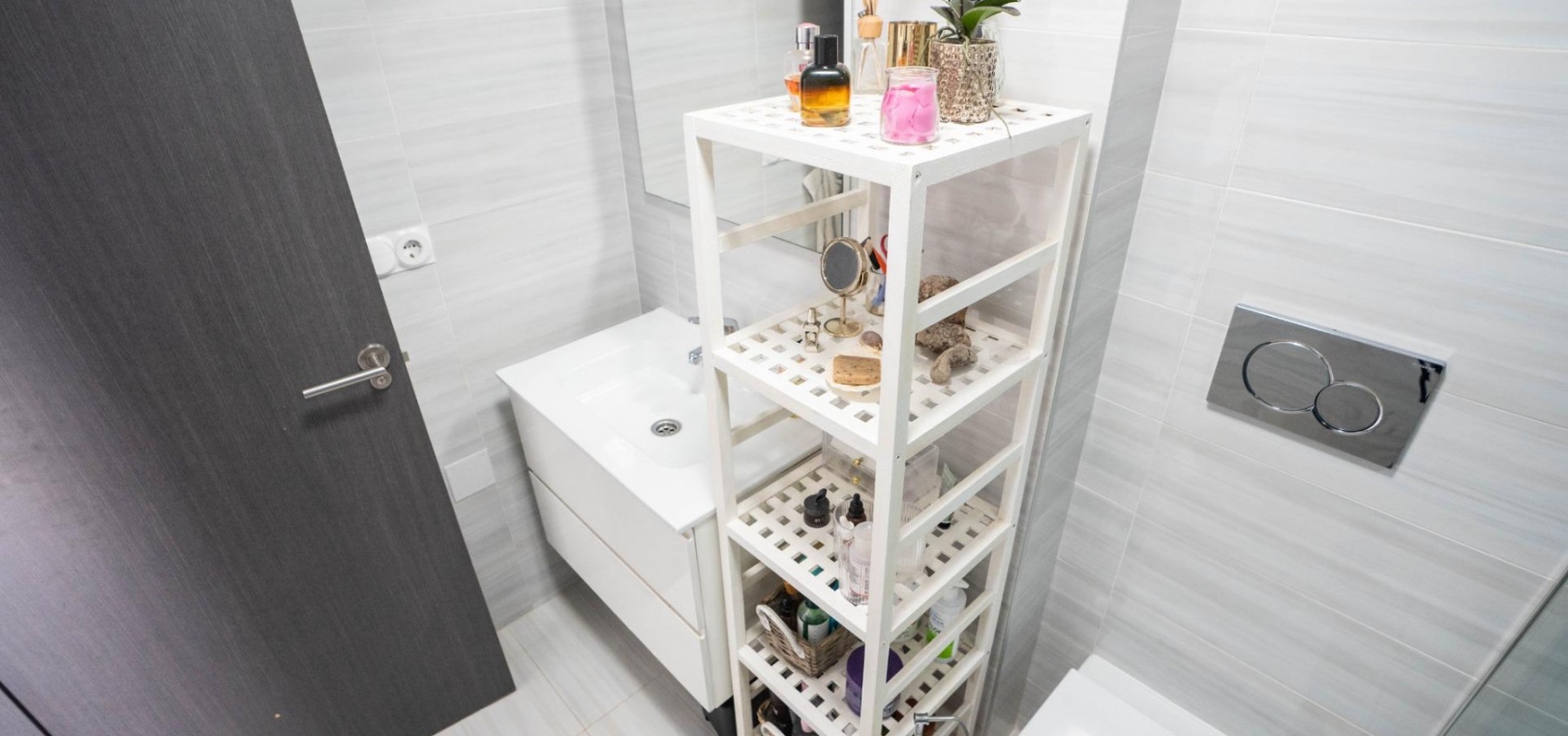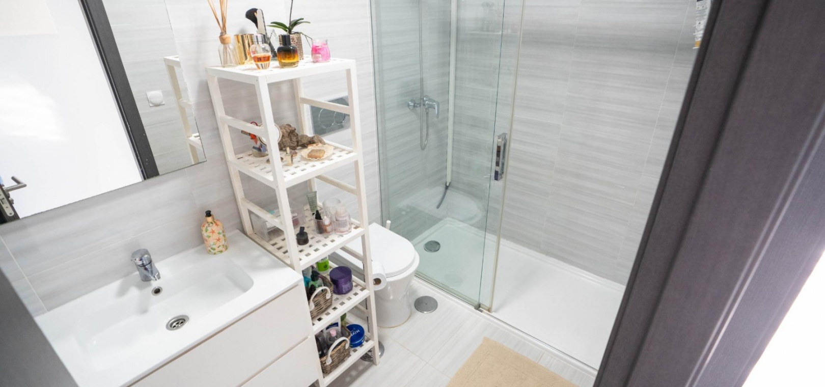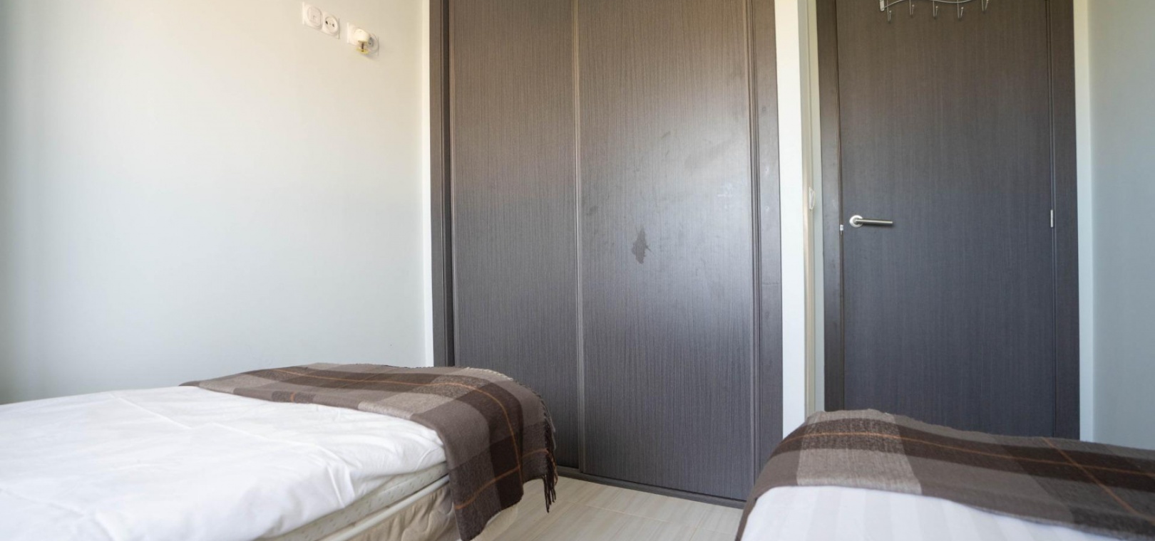 De woning bestaat uit twee tweepersoonsslaapkamers, waaronder een hoofdslaapkamer met en-suite badkamer, een gastenbadkamer en beide badkamers hebben ramen voor veel natuurlijk licht en ventilatie. De open woon- en eetkamer loopt naadloos over in een volledig uitgeruste keuken met opbergruimte en een bijkeuken.