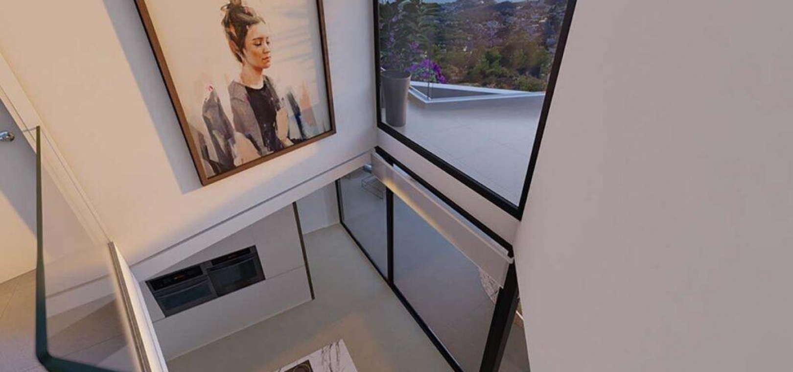Ontdek dit uitstekende nieuwbouwproject van 16 vrijstaande villa's met prachtig uitzicht op zee, gelegen in de prestigieuze urbanisatie Golden Valley in Poble Nou de Benitachell, Alicante. Deze bevoorrechte omgeving ligt tussen de populaire kustplaatsen Moraira en Javea en biedt een rustige woonomgeving, omgeven door natuur, maar toch dicht bij stranden, restaurants en essentiële voorzieningen. De verhoogde ligging garandeert een panoramisch uitzicht op de Middellandse Zee en een rustige levensstijl aan de Costa Blanca.