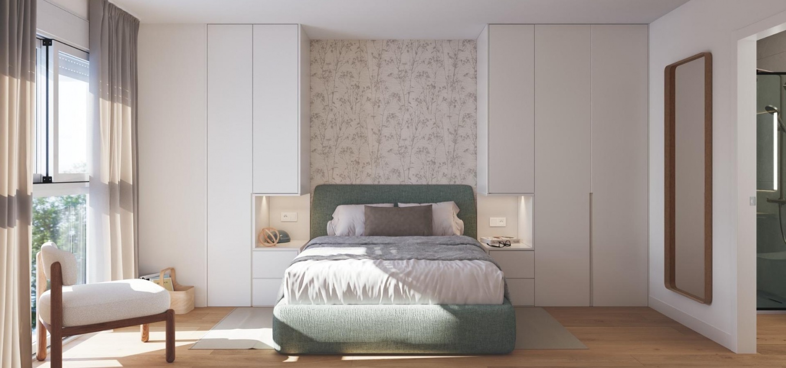 Het project biedt appartementen met 1 slaapkamer en 1 badkamer of 2 slaapkamers en 2 badkamers, waarvan één en suite. Elke woning heeft een eigen terras van ongeveer 9 m2 en een lichte open indeling, waarbij de volledig ingerichte keuken met apparatuur naadloos aansluit op de woonkamer.