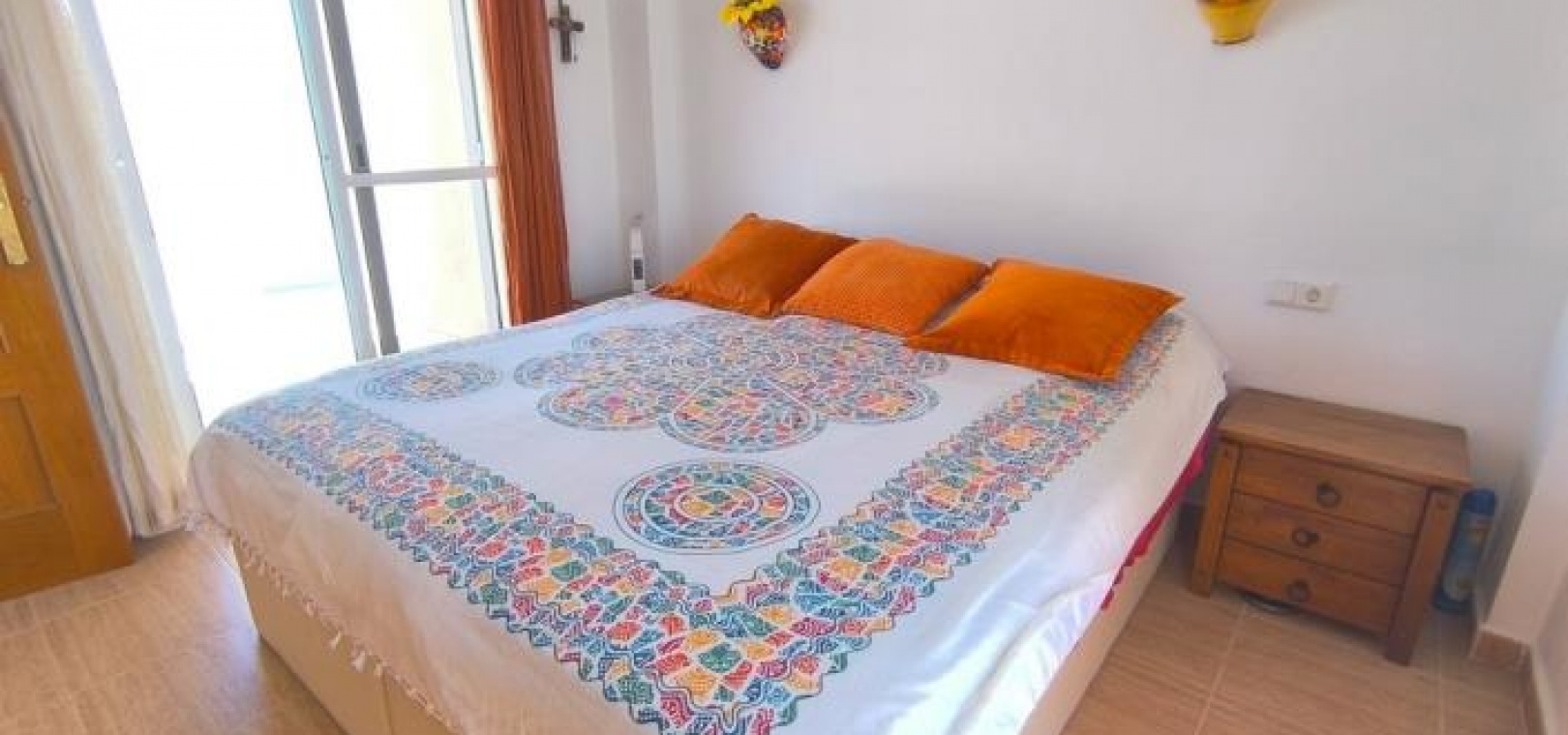 Lichte woon- en eetkamer met airconditioning. Een goed ingerichte keuken met toegang tot een aparte bijkeuken. Twee ruime slaapkamers en een gezinsbadkamer op de begane grond – ideaal voor gelijkvloers wonen. Hoofdslaapkamer op de eerste verdieping met twee privébalkons, moderne en-suite badkamer met douche en veel natuurlijk licht.