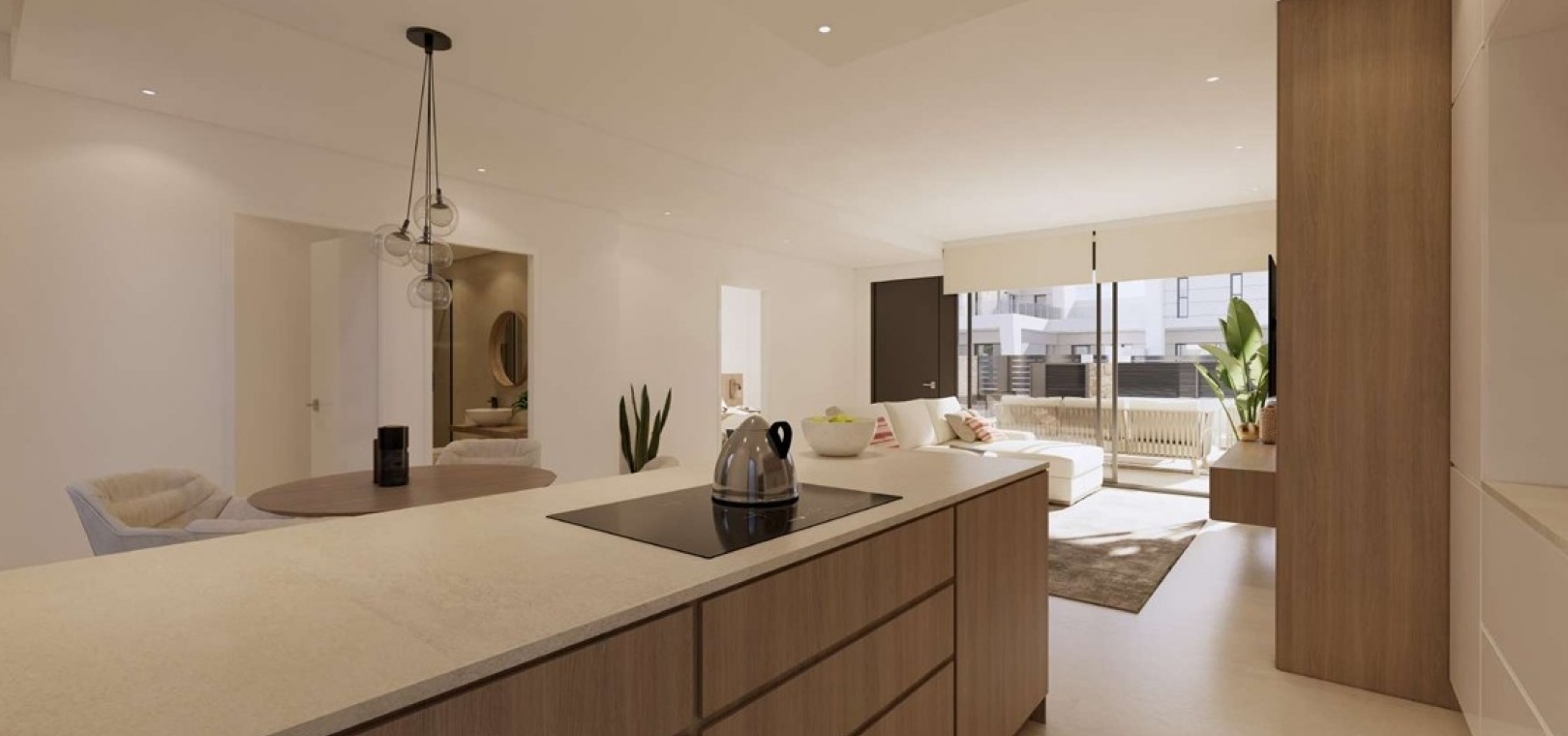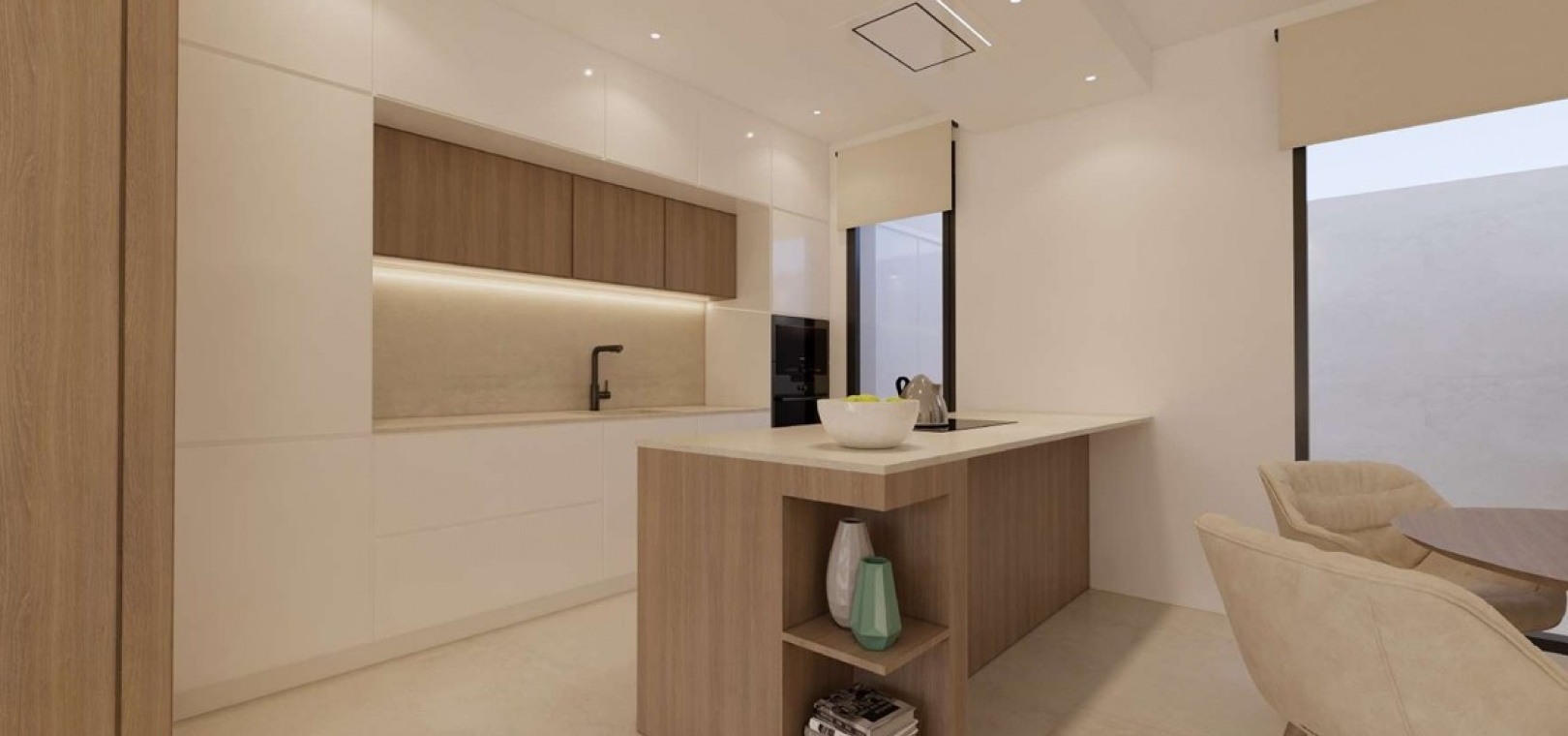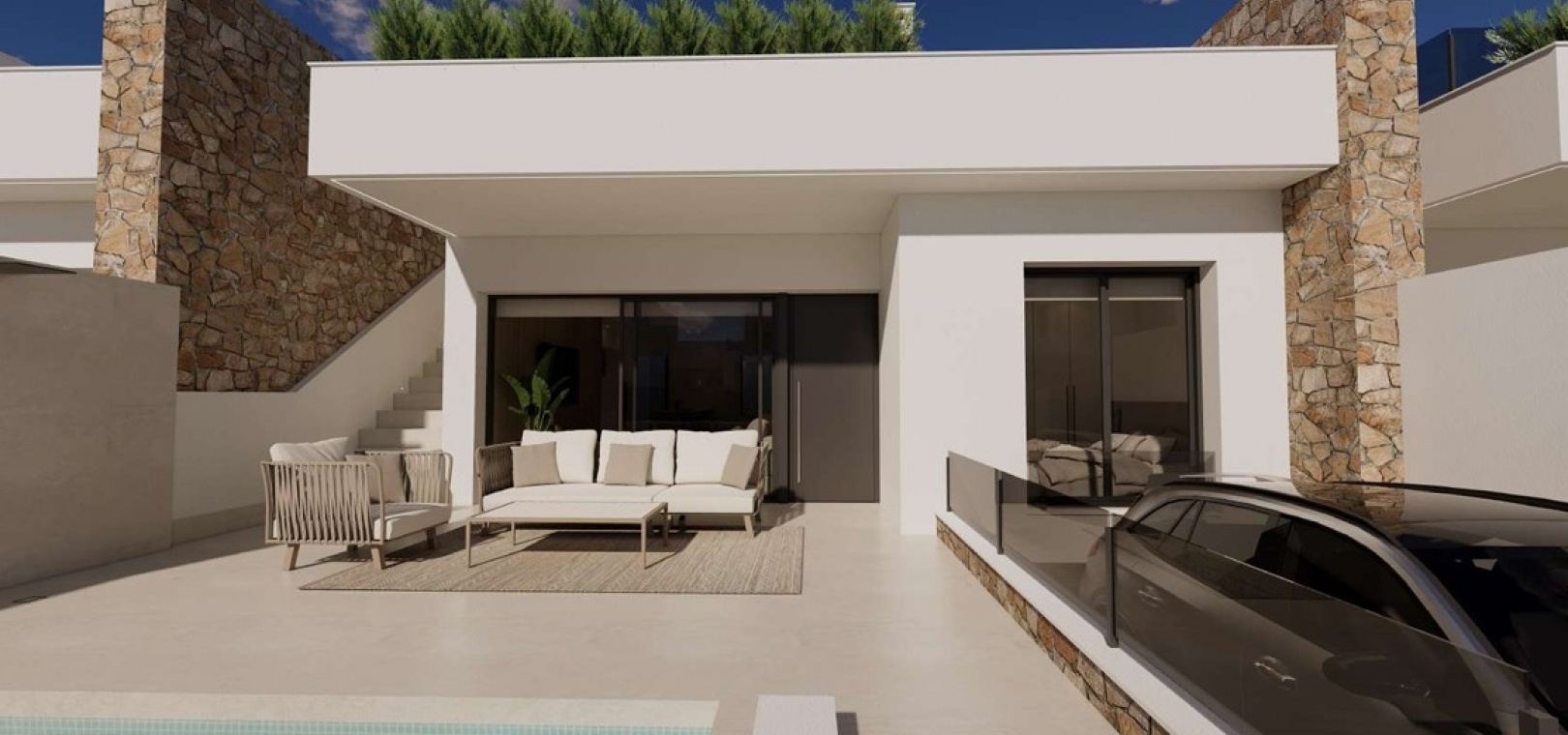 Dit nieuwbouw project in Dolores biedt je een volledige Keuken met alle toestellen en ontbijtbar, een aansluitende wasplaats, 2 badkamers volledig afgewerkt, 2 slaapkamers met ingemaakte kasten.