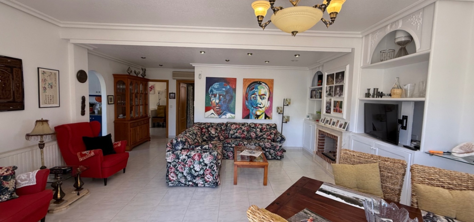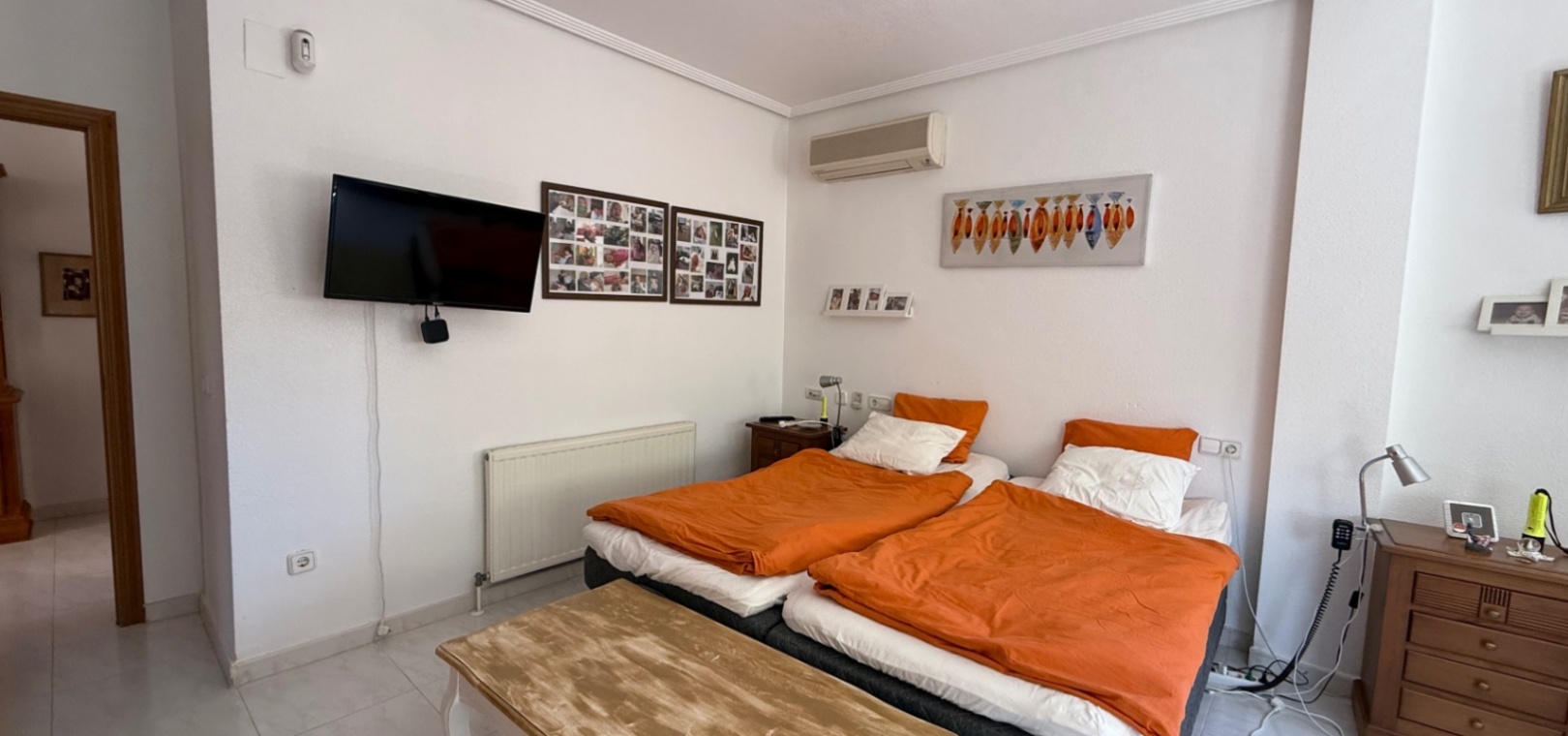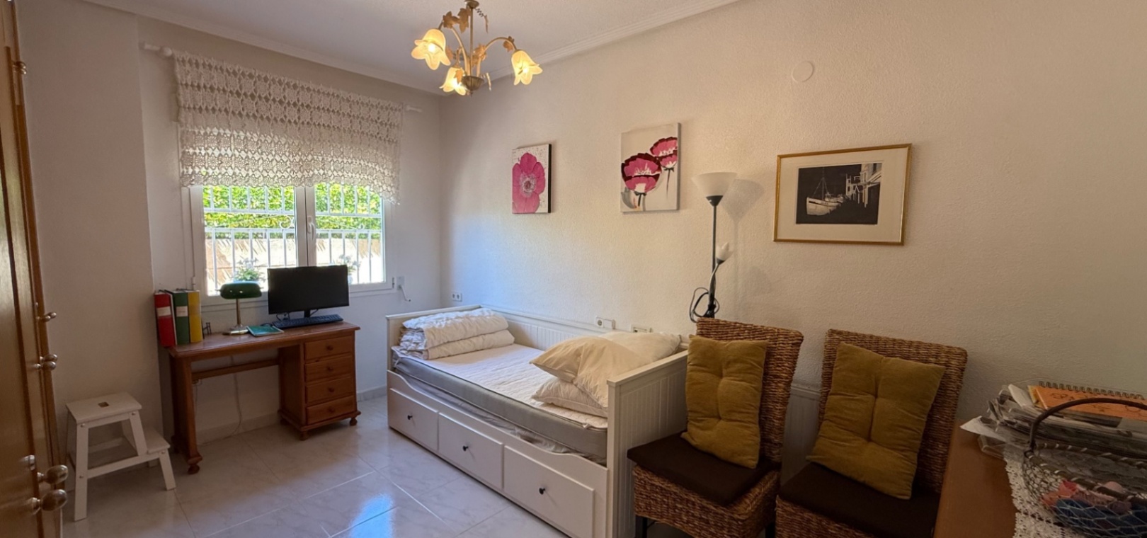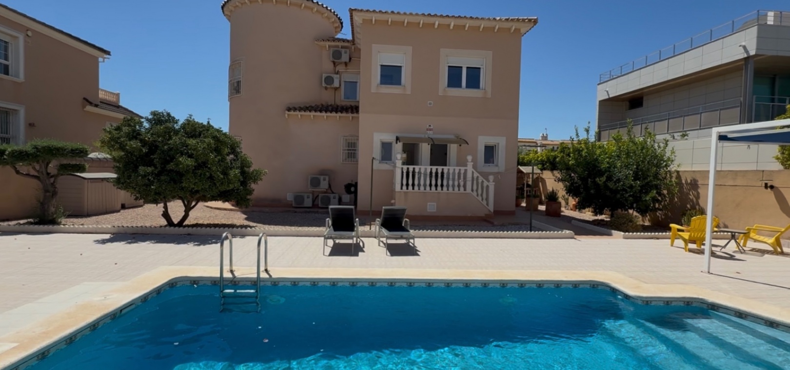 Villa met twee verdiepingen in La Zenia, Orihuela Costa Privézwembad en aangelegde tuinen Begane grond: ruime woonkamer Tweede verdieping: gastenappartement met keuken, 2 slaapkamers en badkamer Dicht bij het strand, restaurants, bars en andere voorzieningen. Luxe afwerking en royale interieurs Ideaal voor gezinsbewoning of als investeringsobject.