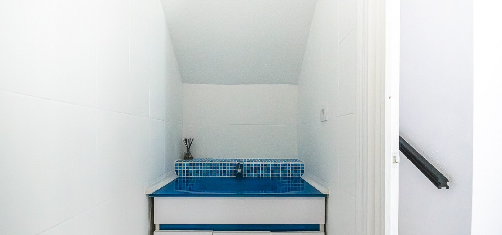 De begane grond beschikt over een lichte woon- en eetkamer met een halfopen keuken , een slaapkamer en een badkamer met toilet en douche.