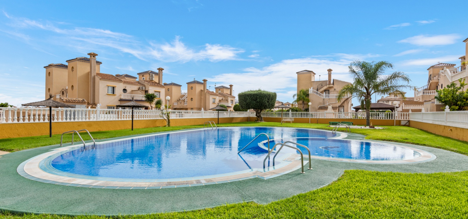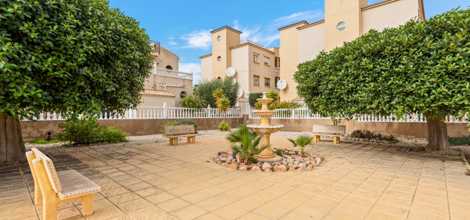 Een gemeenschappelijk zwembad Goed onderhouden groene zones en aangelegde tuinen Buiten zitjes, ideaal om te ontspannen en te socialiseren.