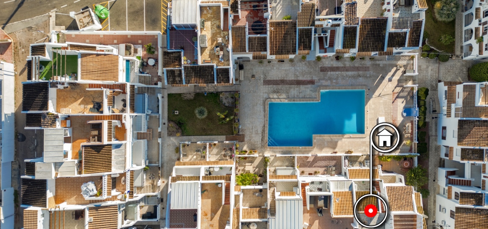 Vanuit de woonkamer heeft u toegang tot een aangenaam terras, ideaal om te genieten van het mediterrane klimaat. Een trap leidt vanaf het terras naar een privésolarium – perfect om te zonnebaden of in alle rust te ontspannen. De ligging op het westen zorgt voor veel natuurlijk licht en prachtige zonsondergangen.