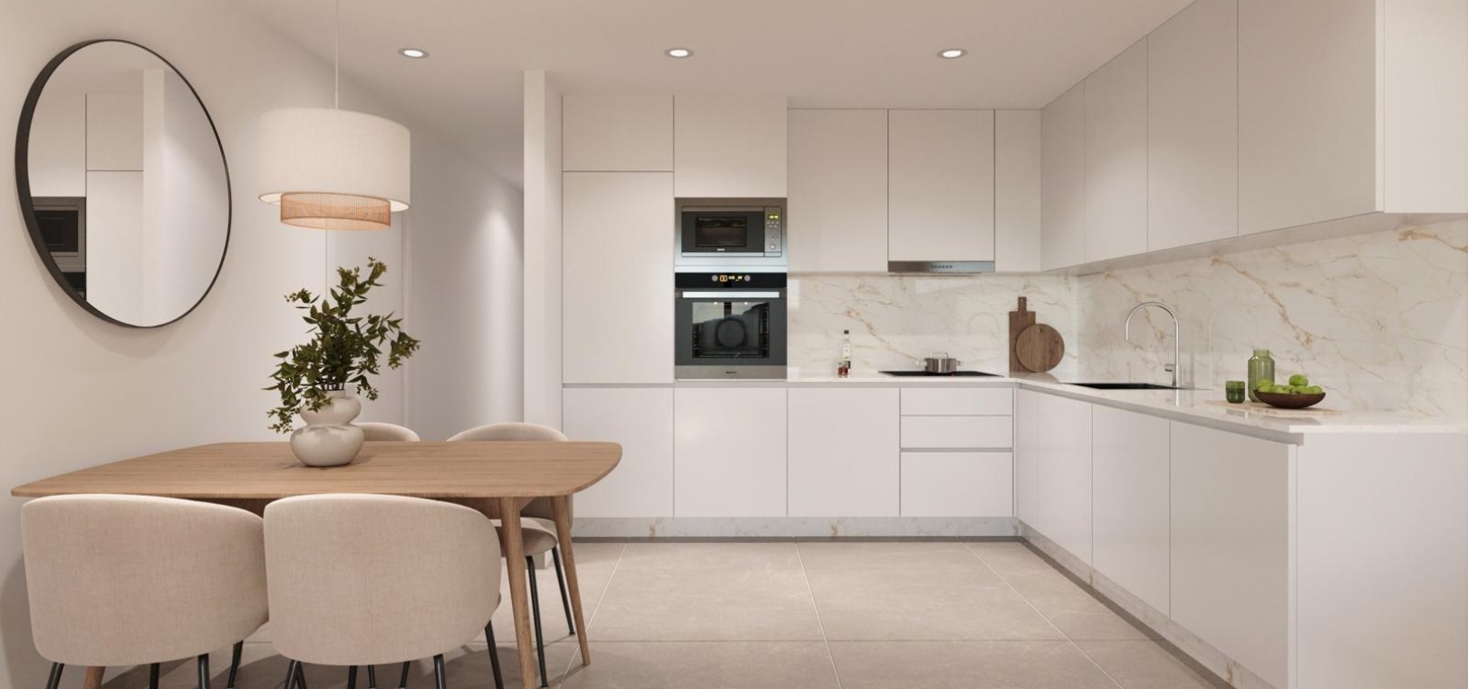 Dit exclusieve nieuwe project bestaat uit slechts 12 appartementen en penthouses met 2 of 3 slaapkamers, ontworpen om comfort, functionaliteit en een eigentijdse stijl te bieden. De appartementen op de middelste verdiepingen hebben royale terrassen, terwijl de penthouses beschikken over een extra privéterras, ideaal om te zonnebaden of buiten te dineren. Alle woningen hebben een open keuken die in verbinding staat met de woon- en eetkamer, waardoor een licht en uitnodigend interieur ontstaat. De slaapkamers zijn voorzien van inbouwkasten en de badkamers zijn volledig uitgerust met meubilair, spiegels en doucheschermen. Optionele ondergrondse parkeerplaatsen en opslagruimtes zijn beschikbaar tegen een meerprijs.