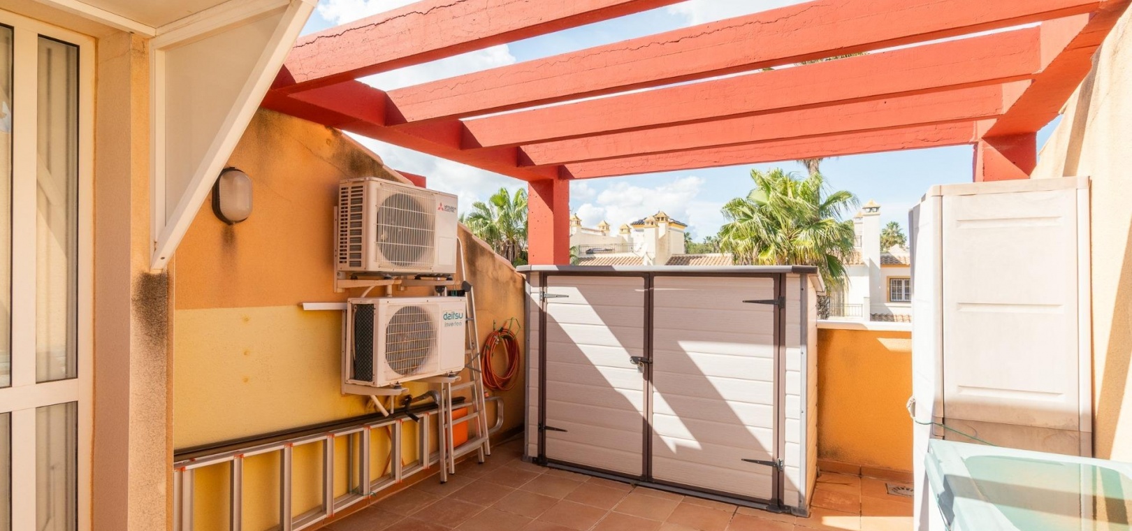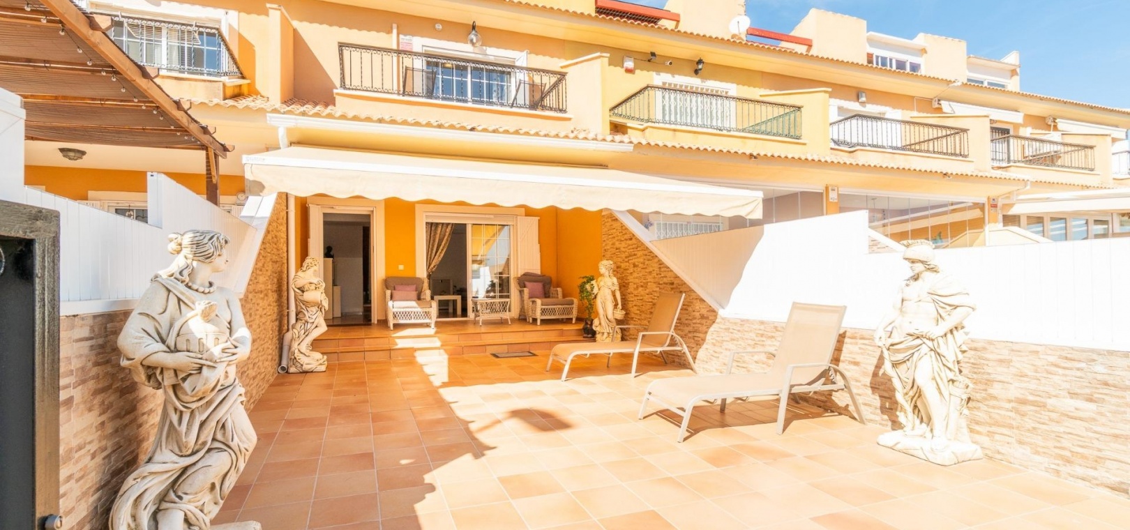 Wij presenteren u deze fantastische townhouse met 3 slaapkamers, gelegen in de zeer gewilde wijk Villamartín, een ideale locatie om te genieten van de zon, de rust en de levensstijl van de Costa Blanca.