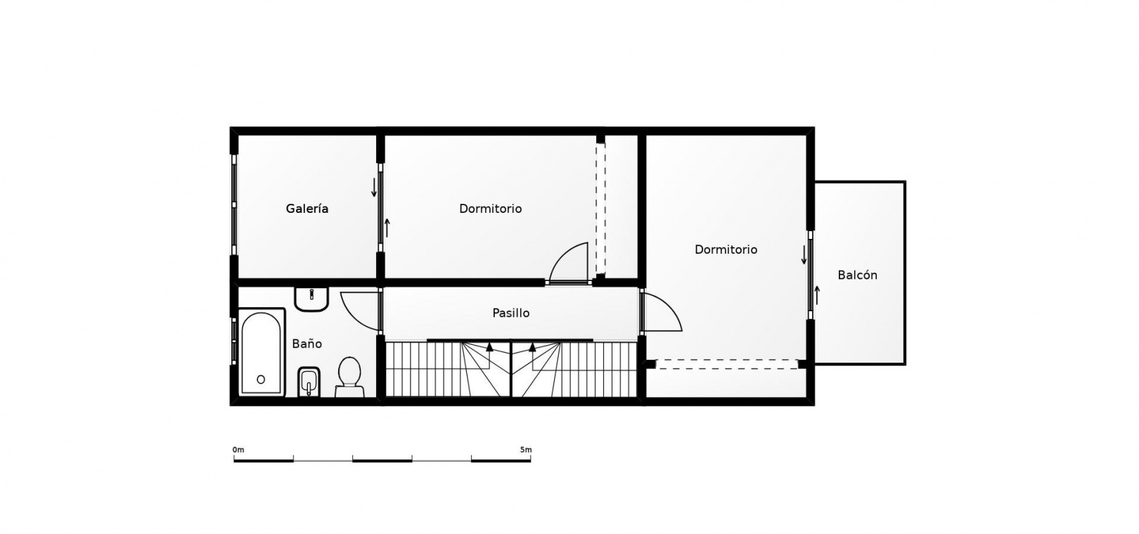 De eerste verdieping omvat twee extra slaapkamers, elk met een eigen terras, en een complete gezinsbadkamer met ligbad. Een van de terrassen is afgesloten, waardoor extra leefruimte is gecreëerd en het comfort het hele jaar door wordt verhoogd.
