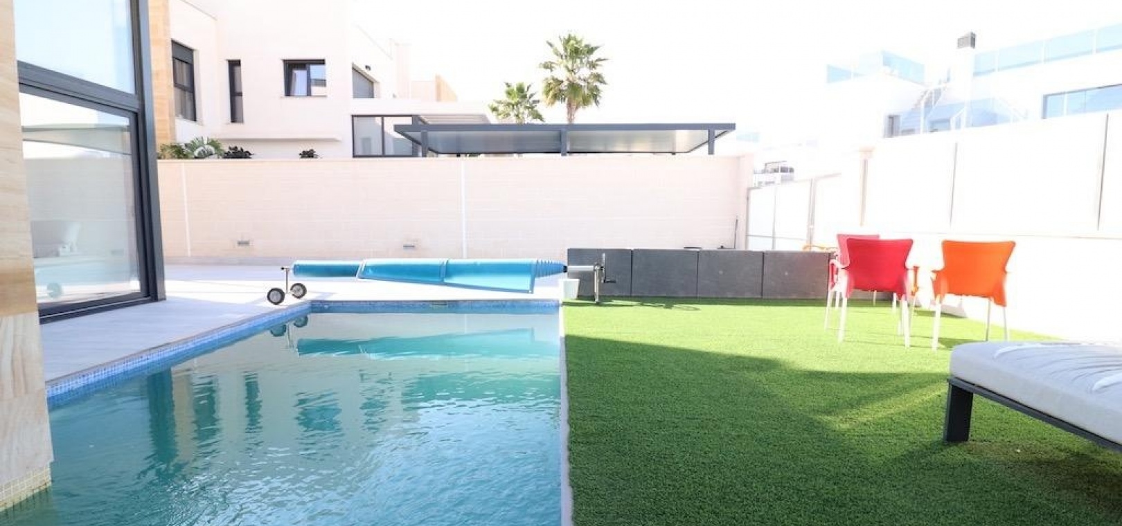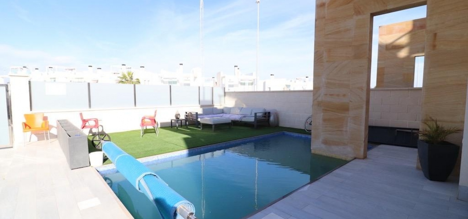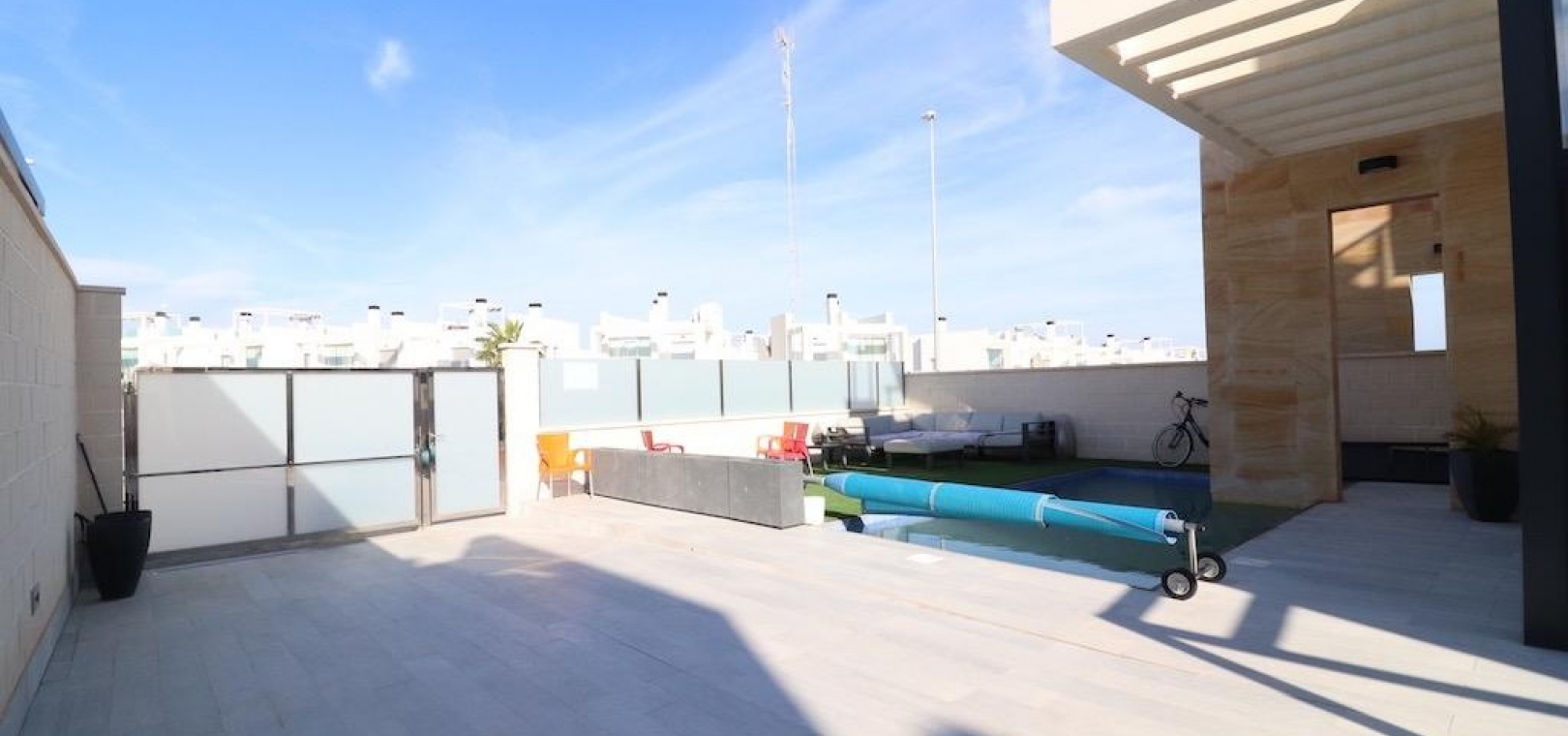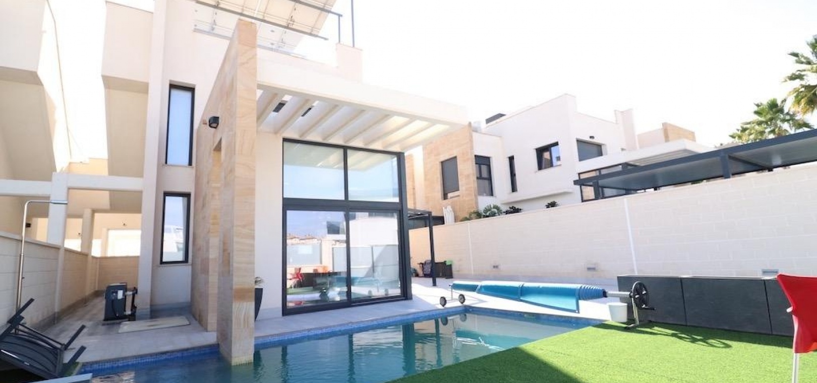Extra voorzieningen zijn onder andere een oprit, airconditioning, een semi-gemeubileerd interieur, automatische zonneschermen en volledige energieonafhankelijkheid, wat het hele jaar door comfort en efficiëntie garandeert. Deze villa combineert privacy, stijl en functionaliteit in één uitzonderlijke woning.