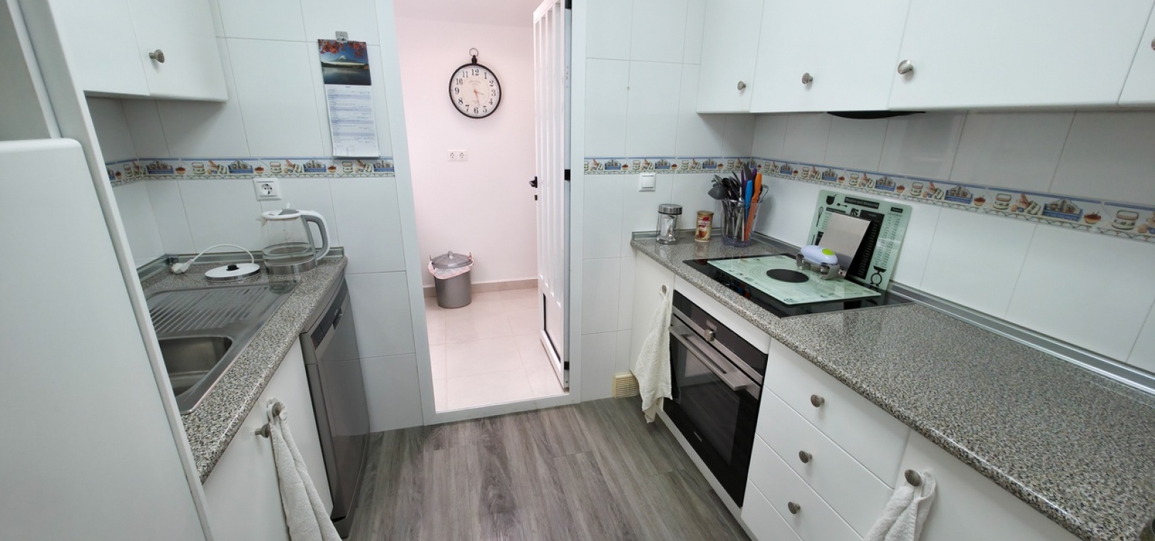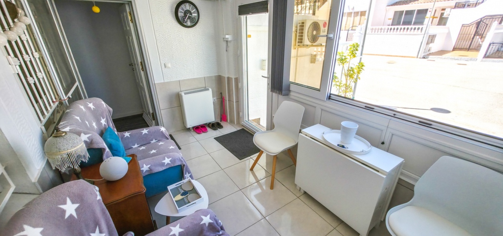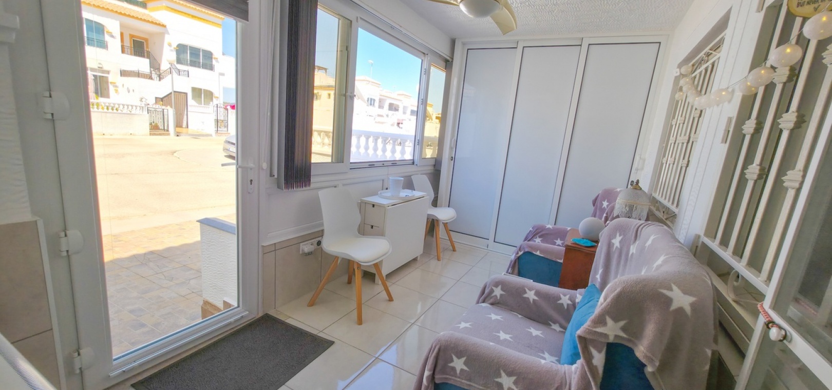 Het appartement beschikt over twee ruime tweepersoonsslaapkamers en een stijlvolle, moderne badkamer met inloopdouche. Extra voorzieningen zijn onder andere airconditioning in de woonkamer, verbeterde isolatie voor comfort het hele jaar door, een beveiligingscamerasysteem en gedeeltelijke meubilering voor direct gebruik.