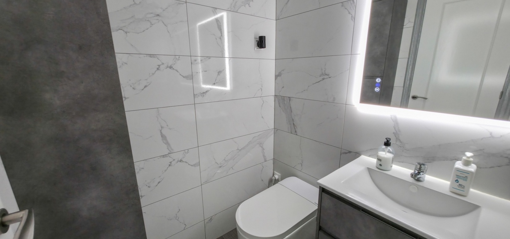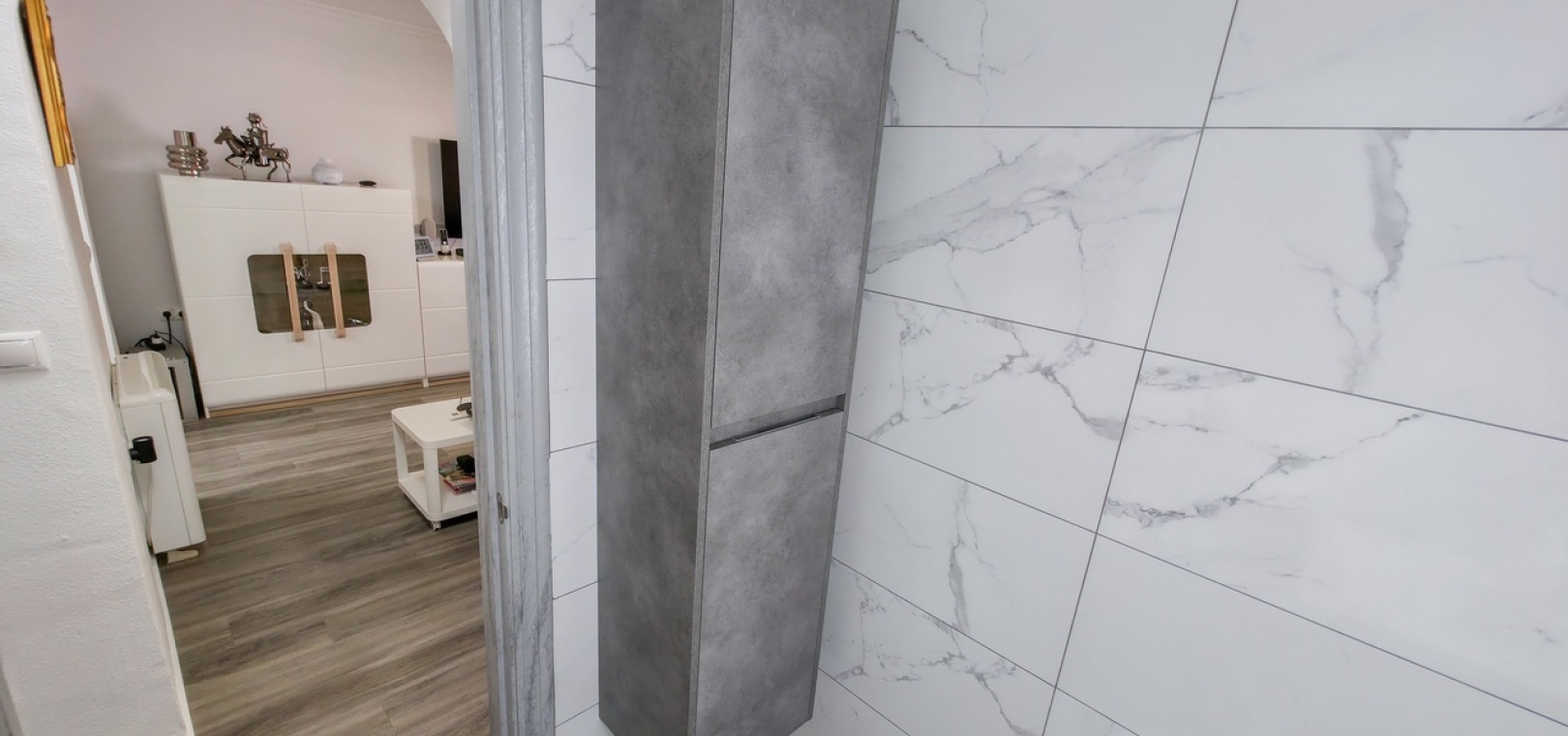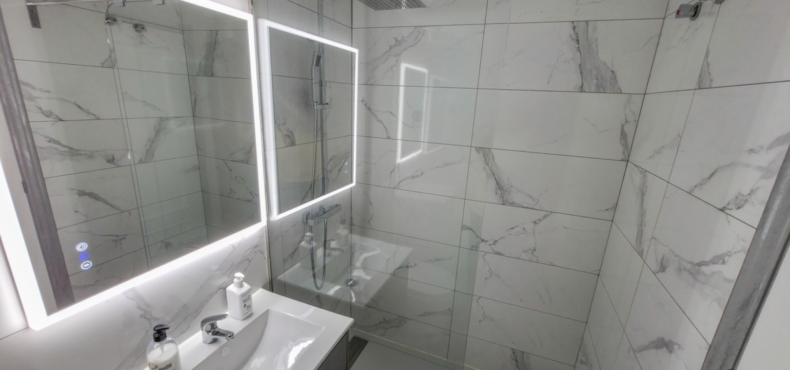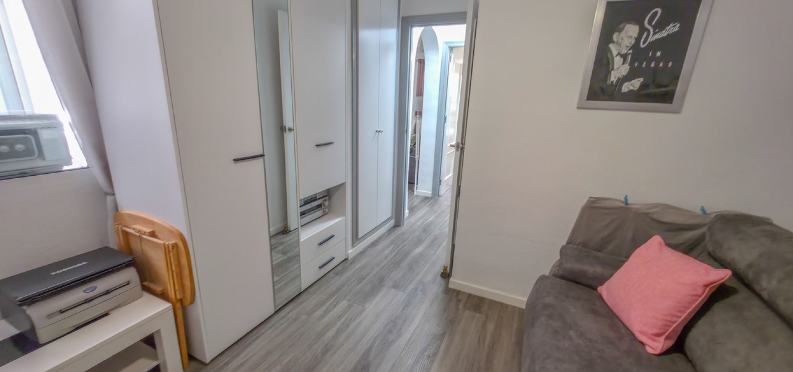 Het appartement beschikt over twee ruime tweepersoonsslaapkamers en een stijlvolle, moderne badkamer met inloopdouche. Extra voorzieningen zijn onder andere airconditioning in de woonkamer, verbeterde isolatie voor comfort het hele jaar door, een beveiligingscamerasysteem en gedeeltelijke meubilering voor direct gebruik.