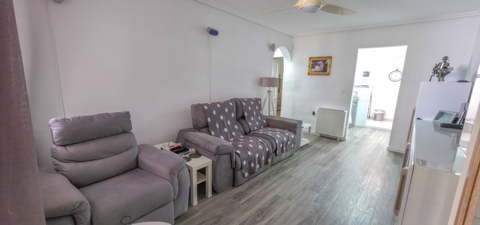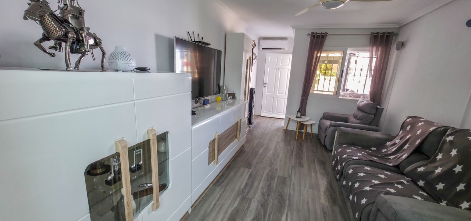 De woning is met zorg gerenoveerd om een lichte en eigentijdse woonruimte te creëren. Aan de voorzijde biedt een groot betegeld terras een uitnodigende buitenruimte en dient momenteel als privé parkeerplaats, compleet met een laadpunt voor elektrische voertuigen.
