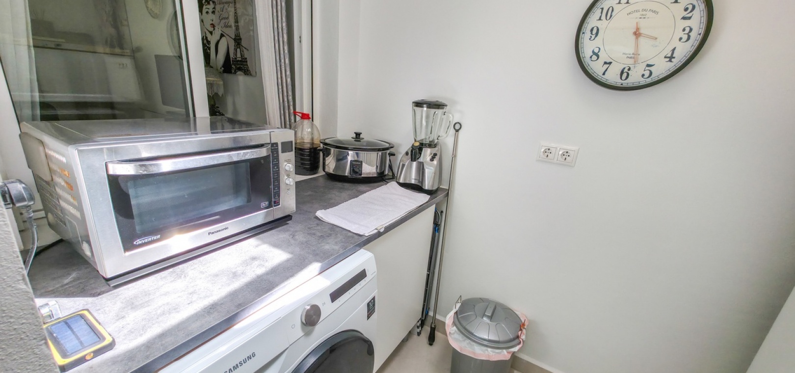 Aan de achterzijde profiteert een onlangs vernieuwde bijkeuken en wasruimte van een moderne dakconstructie en een Velux-raam, waardoor er veel natuurlijk licht binnenkomt en de functionaliteit wordt verbeterd.