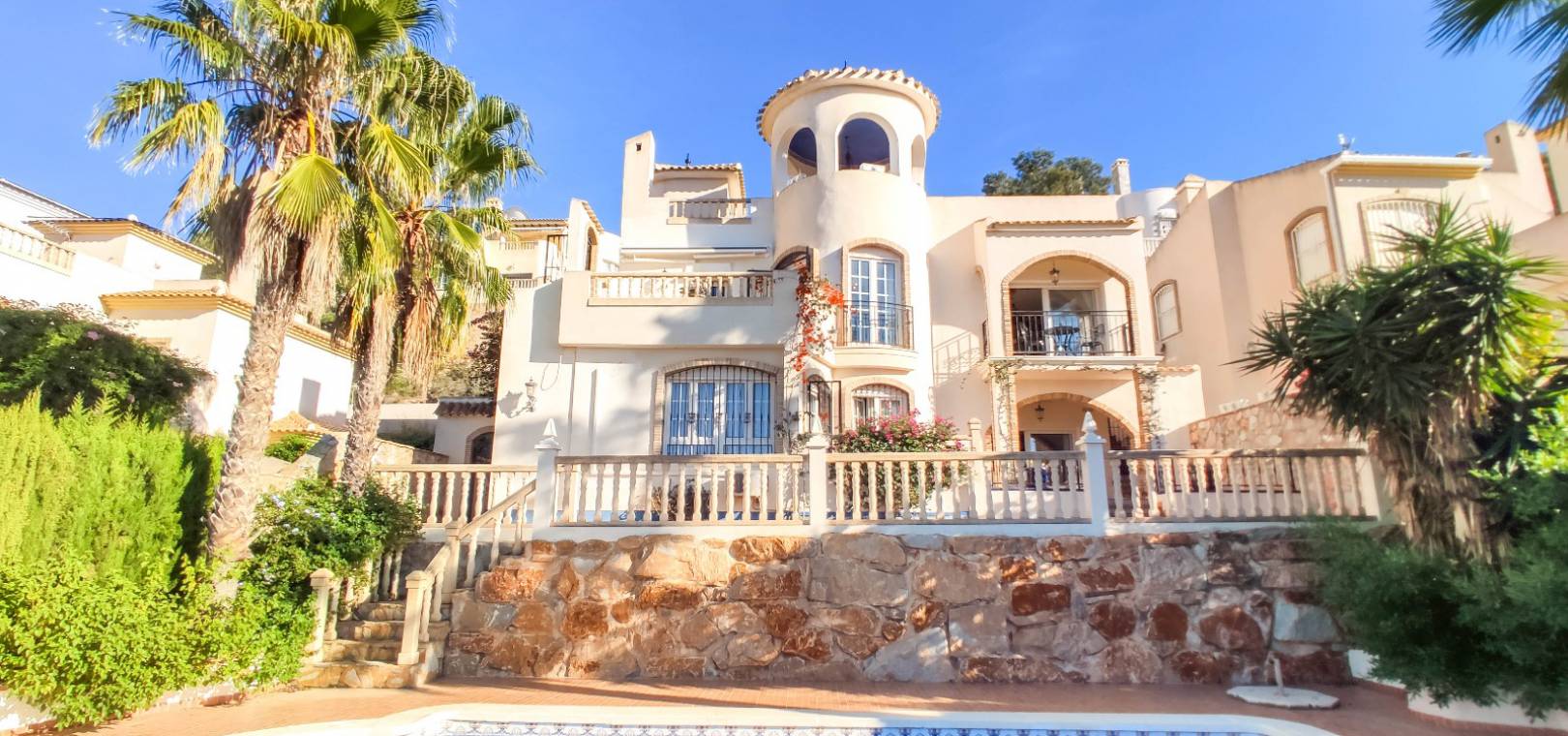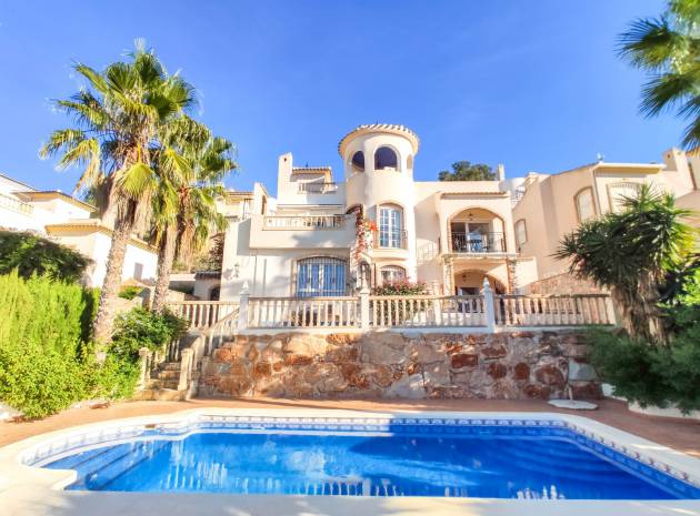 Een vrijstaande villa met 4 slaapkamers en 3 badkamers met een privézwembad dat grenst aan de prachtige golfbaan Las Ramblas, gelegen aan de golfbaan Las Ramblas, Villamartin, Costa Blanca.
