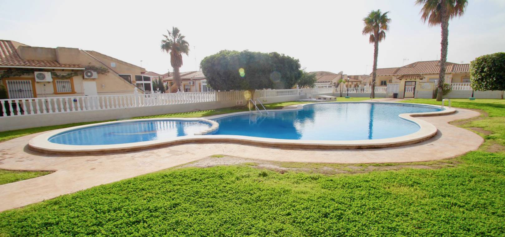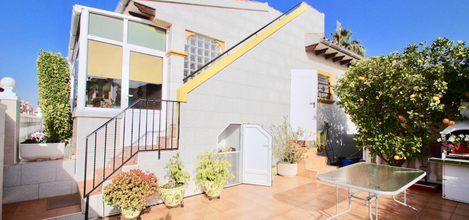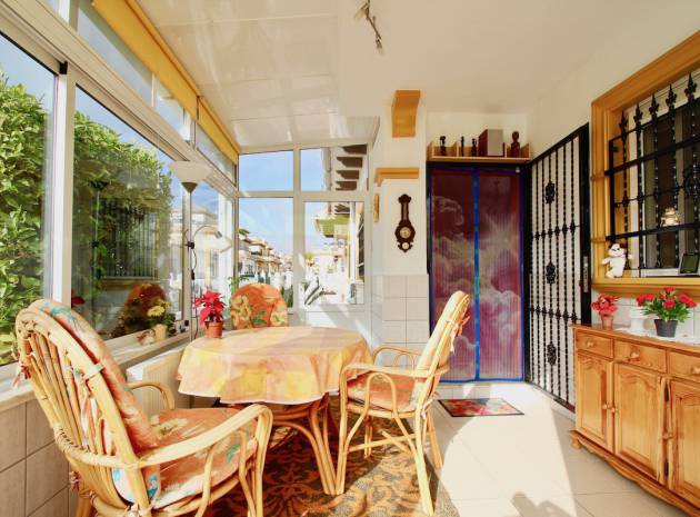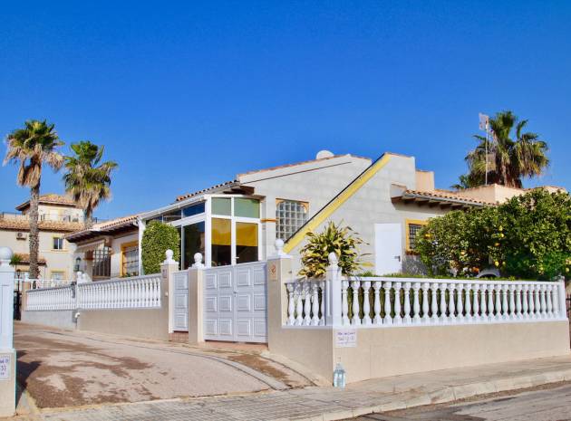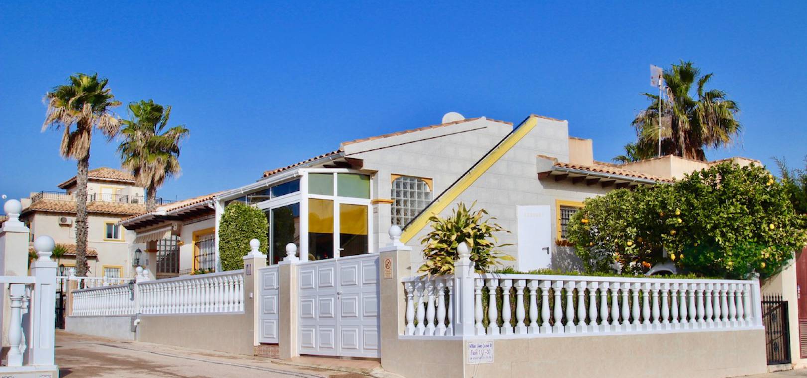 Een bungalow op het zuidwesten met 2 slaapkamers en 1 badkamer in Marbella-stijl, gelegen in Res. San Jose II, Cabo Roig, Costa Blanca.