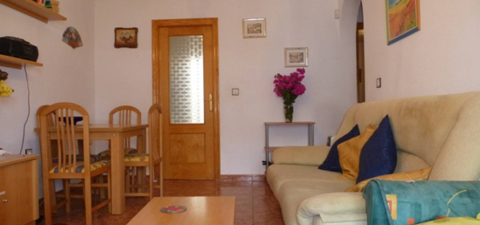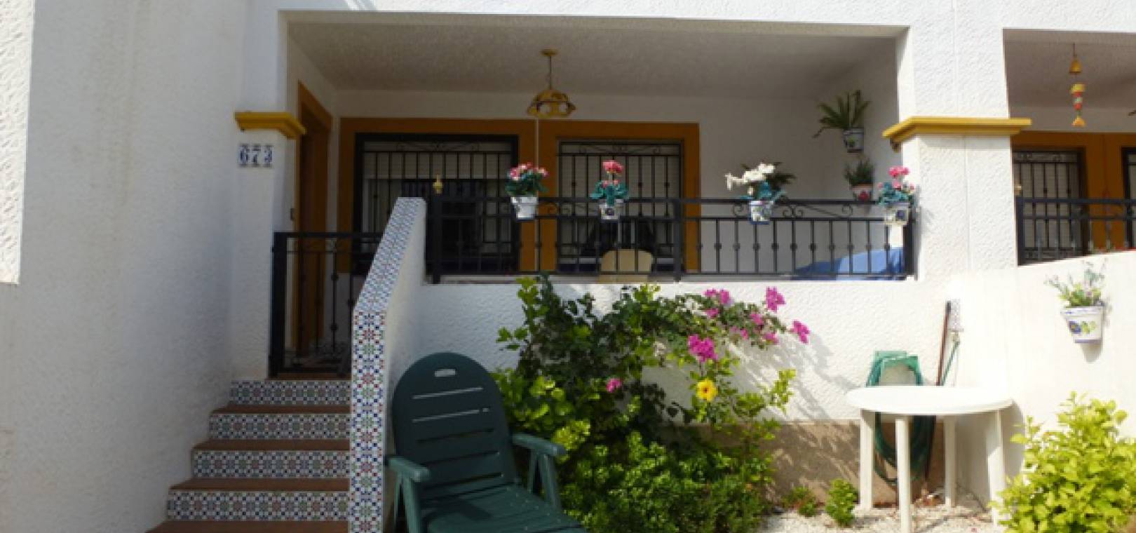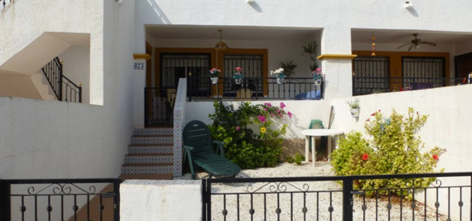 This South West Facing, Two Bedroom, Ground Floor Apartment in Entre Naranjos, being on the edge of this very popular urbanisation right next to the Vistabella golf course. Walking distance of bars, supermarket & restaurants. Within a short drive you have the huge Sunday Zoco market, motorway network linking all the major towns and cities, with the new Zenia Boulevard shopping centre just 10 minutes away. The beautiful beach at Guardamar is 15 minutes by car. The apartment benefits from a spacious gravelled front garden and a covered large entrance terrace, so there´s lots of outdoor space; lounge/dining area, separate fitted kitchen with door to a rear patio, 2 double bedrooms with built-in wardrobes and a family bathroom. There is off road parking and access to two communal pools. Extras include Satellite TV and lots more... A perfect holiday home, and has good rental potential.
