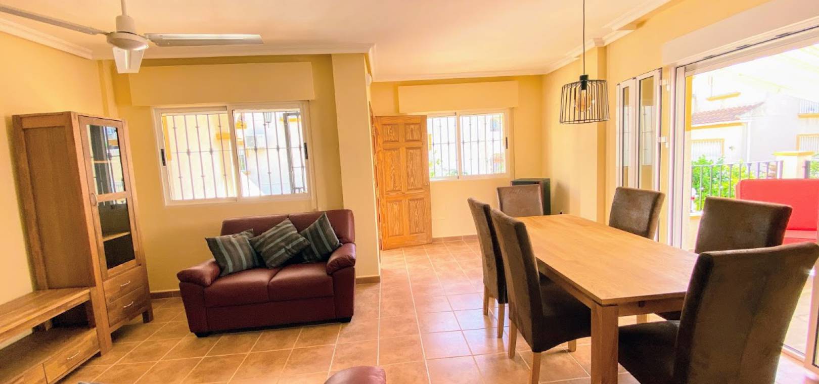 A South East facing 4 bed 2 bath corner townhouse located in Res. Laderas del Sol, Los Altos, Costa Blanca.