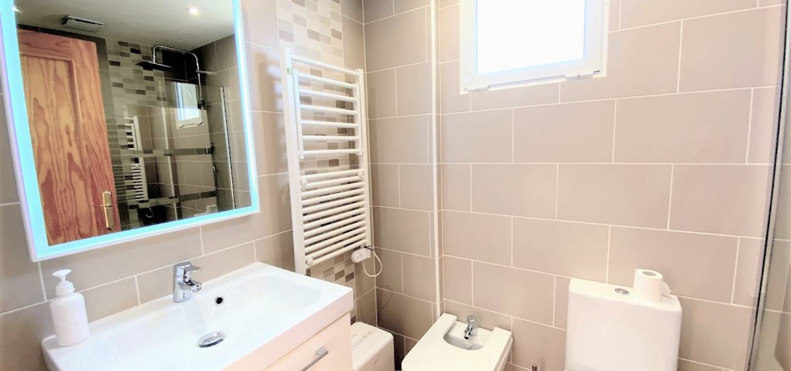 On the ground floor there is a bright and spacious lounge/diner with hot and cold A/C & a ceiling fan, independent newly fully fitted kitchen, leading out from the kitchen is a galleria utility/laundry with a gas boiler, a large double bedroom with fitted wardrobes, hot and cold A/C & a ceiling fan and 1 x newly fitted shower room.