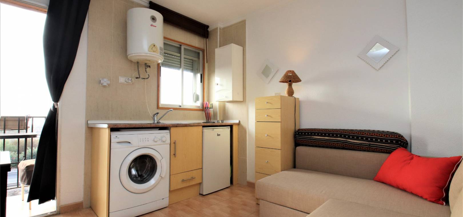 A South West facing studio apartment with 1 bathroom just 300m from the beach located in La Mata, Costa Blanca.