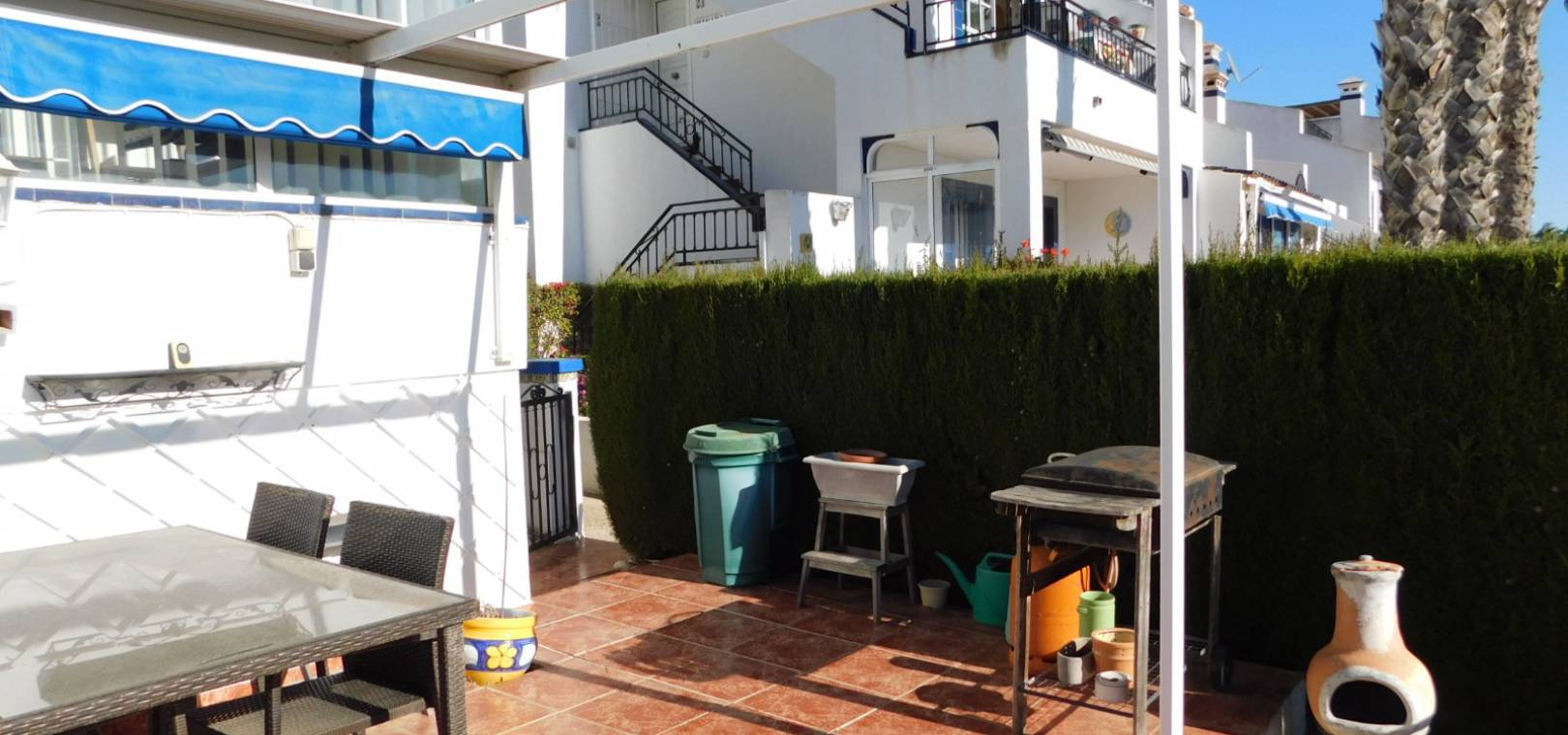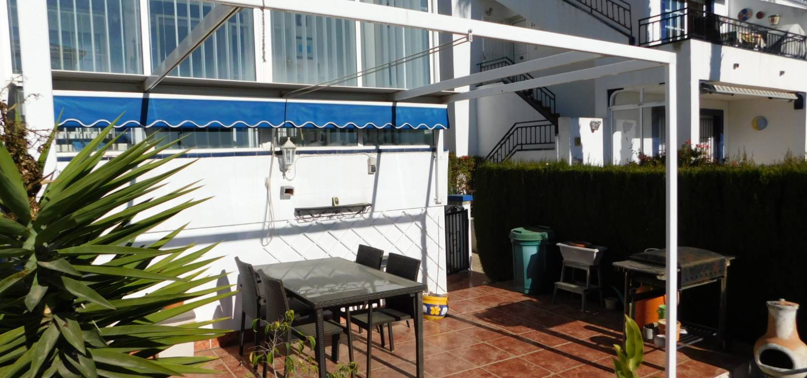A South facing 2 bed 2 bath ground floor corner apartment located in Rioja, Villamartin, Costa Blanca.