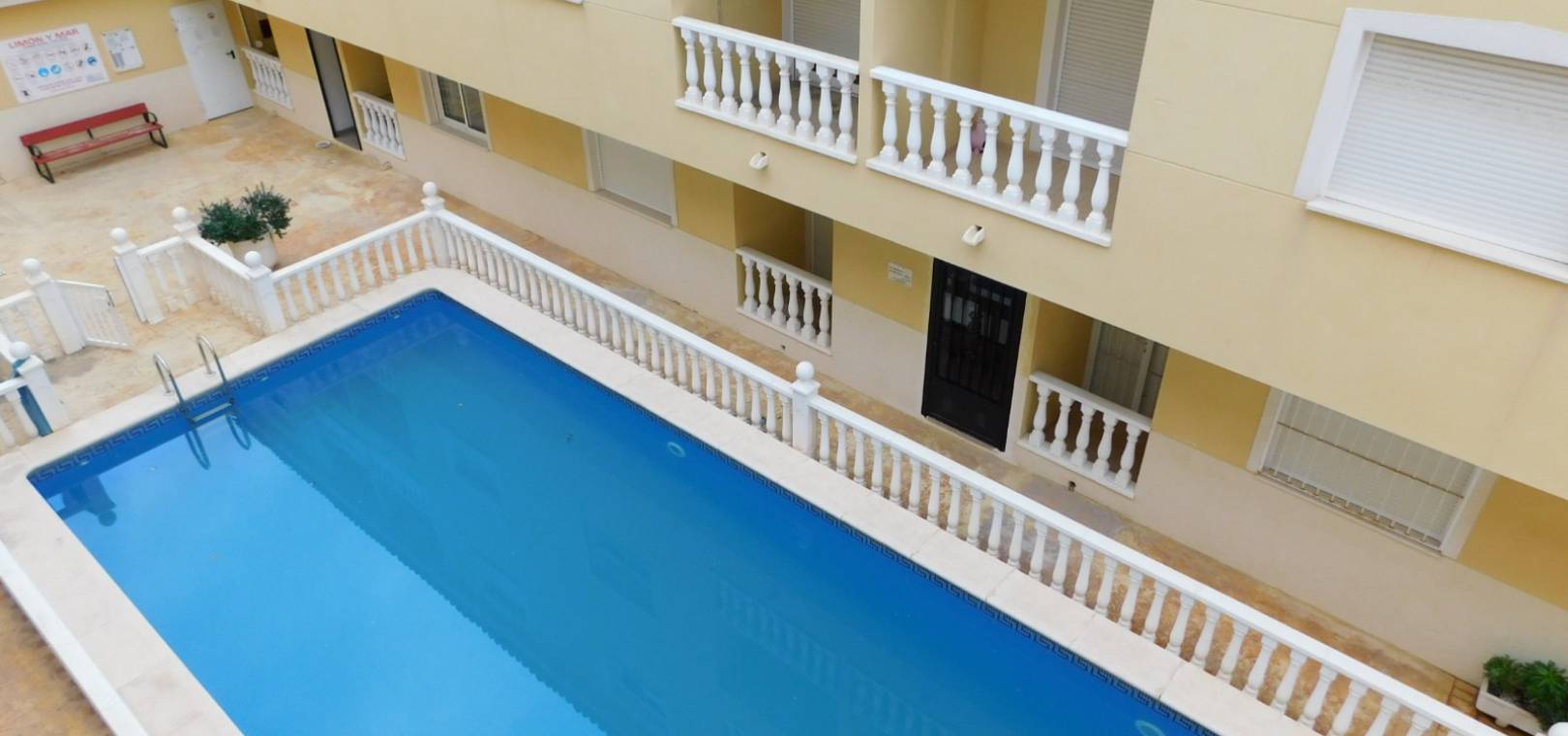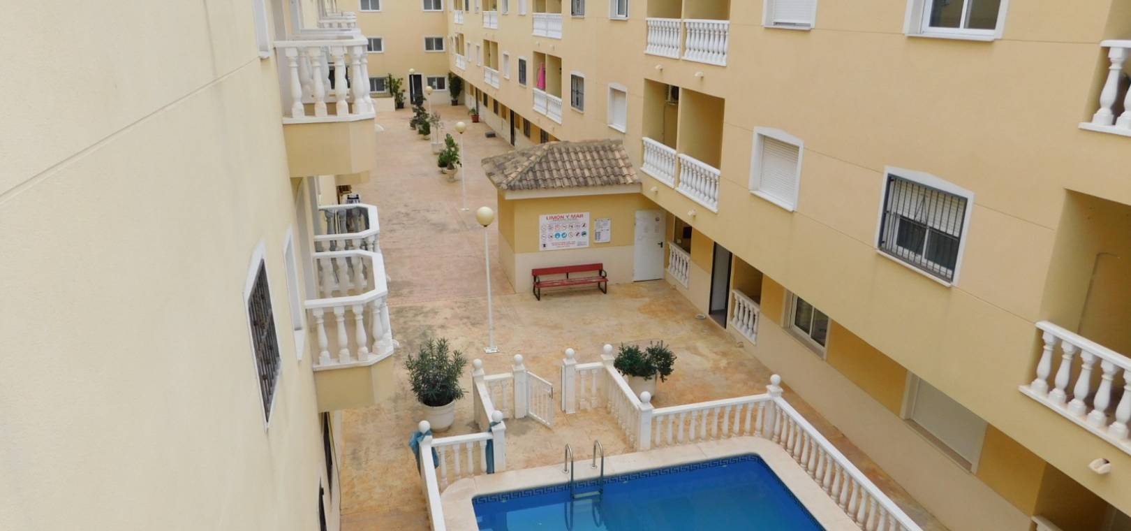 A South facing 2 bed 1 bath top floor apartment with a private rooftop solarium located in Res. Limon y Mar, Formentera del Segura, Costa Blanca.