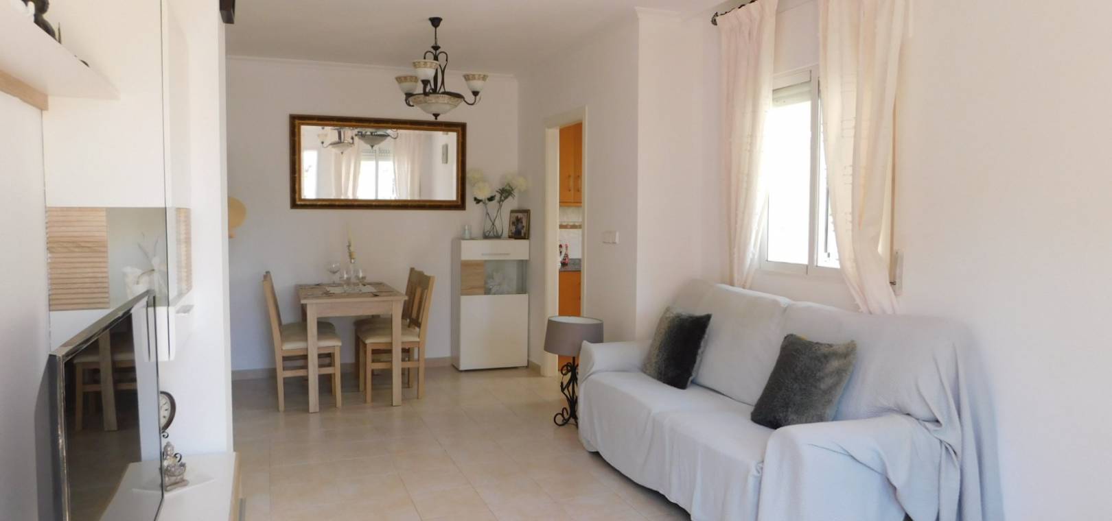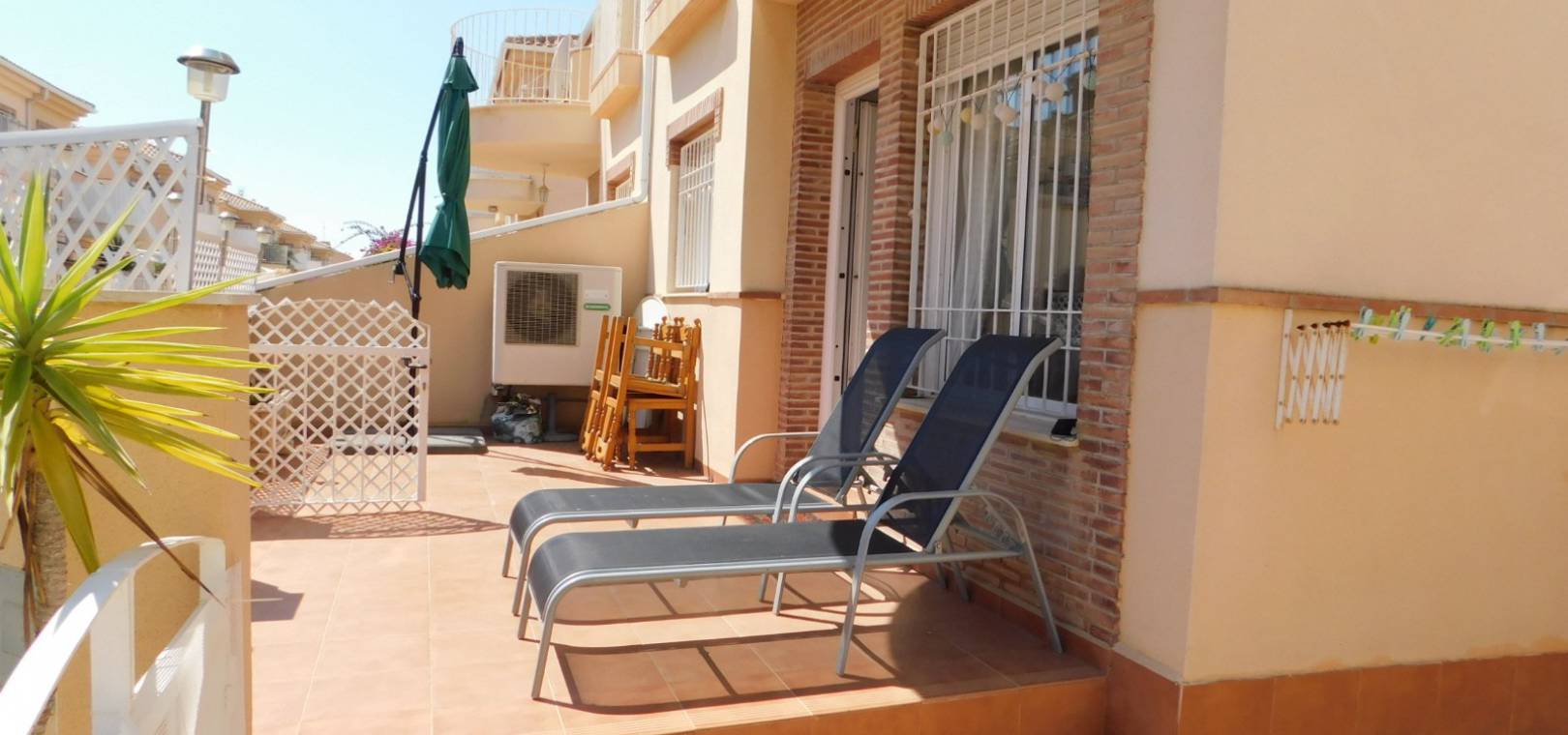 An East facing 3 bed 2 bath quad house located in Res. Avalon, Playa Flamenca, Costa Blanca. Virtual Viewing Available On This Property!