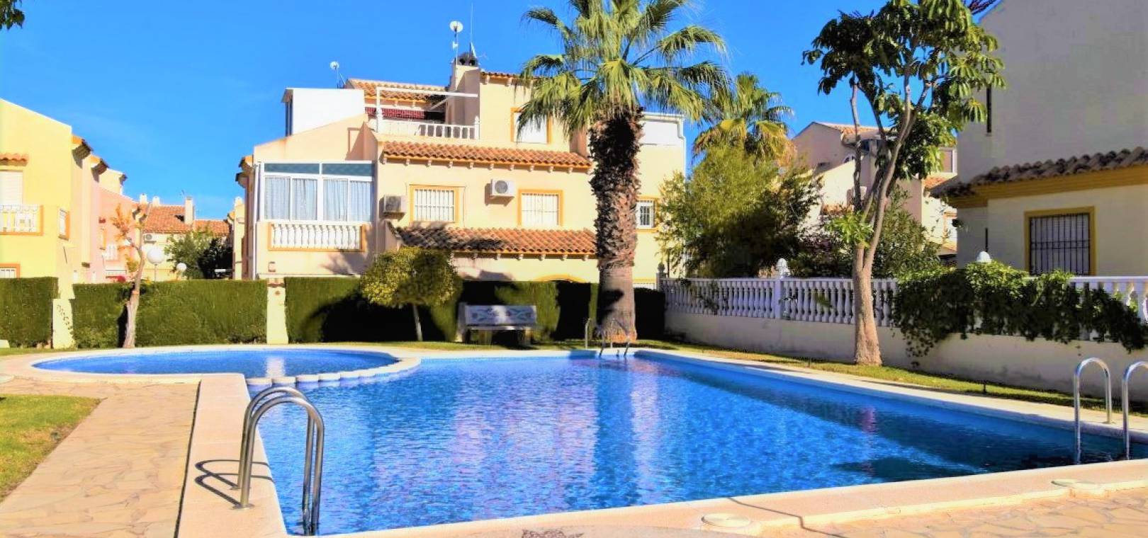 A 2 bed 2 bath quad house located in Res. Perla del Mar, Playa Flamenca, Costa Blanca. Virtual Viewing Available On This Property!