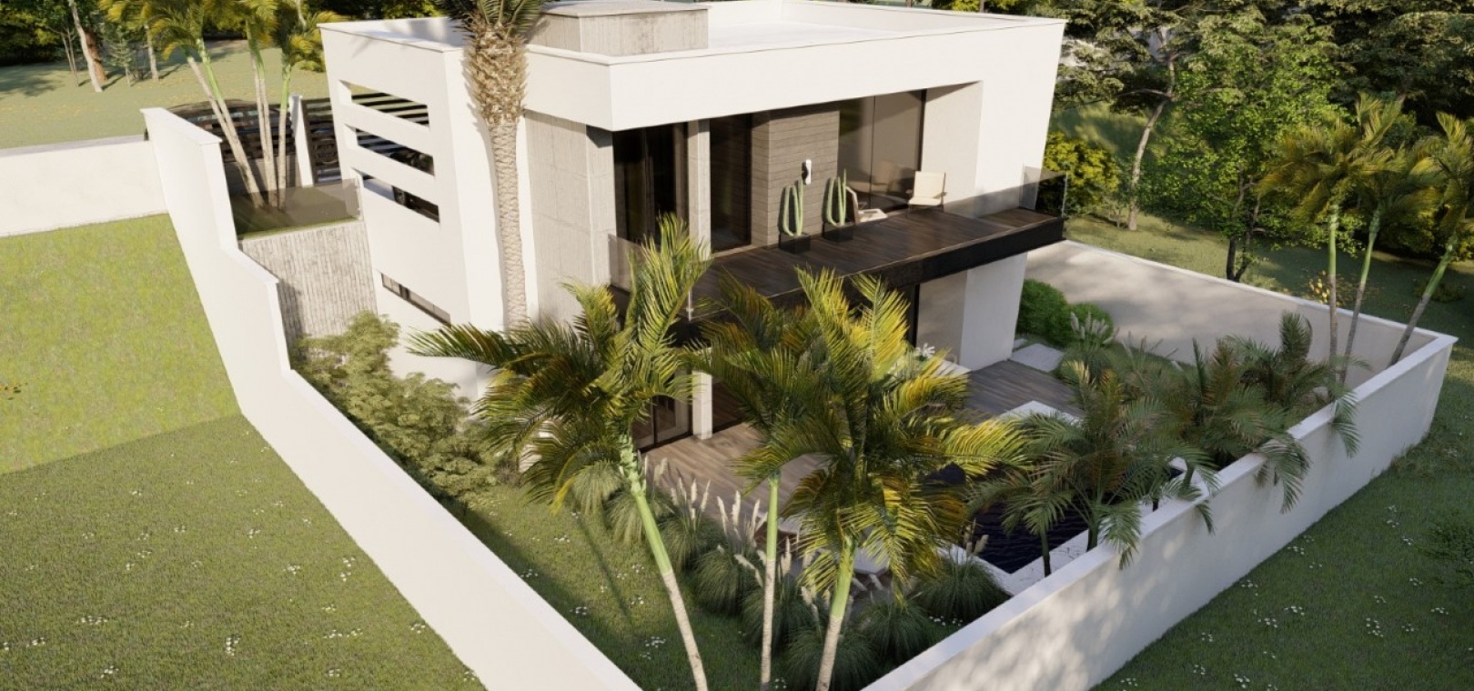 New Build Ultra Modern Design 3 bedroom 3.5 bathroom detached villa with private swimming pools & a basement located in Balneario de Fortuna, Fortuna Murcia.