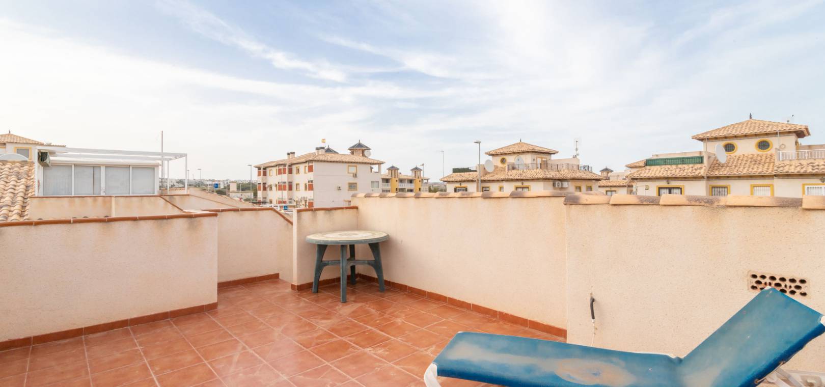 A 2 bed 1 bath Marbella style bungalow with a private swimming rooftop solarium located in Res. San Jose, Cabo Roig, Costa Blanca. Virtual Viewing Available On This Property!