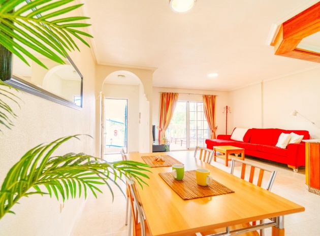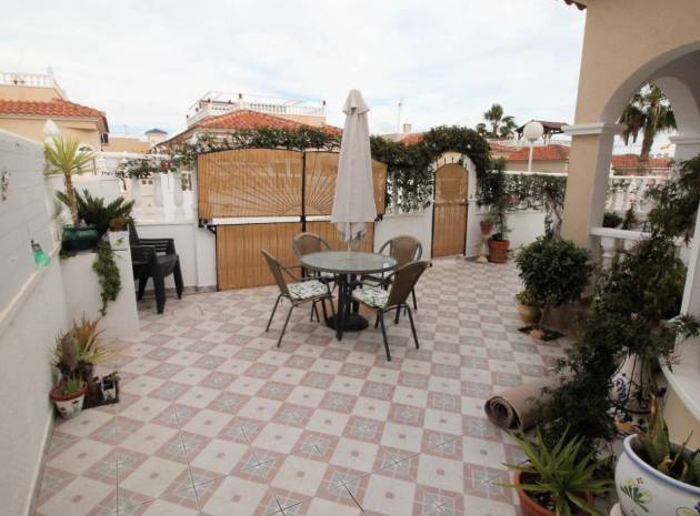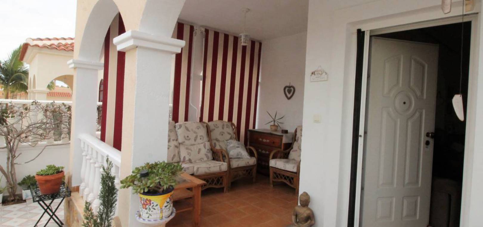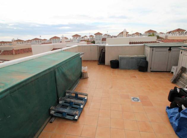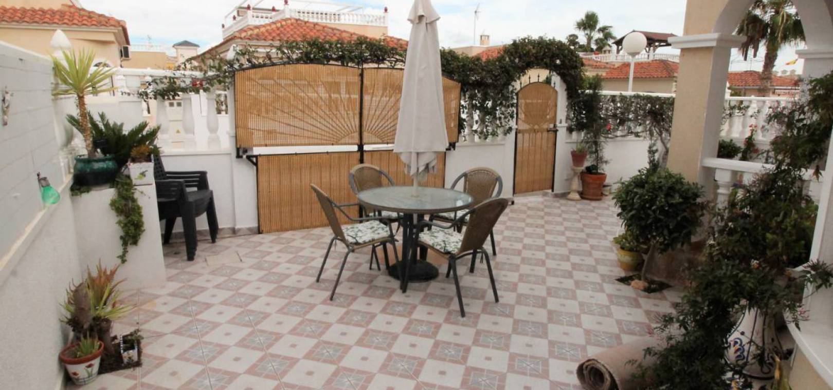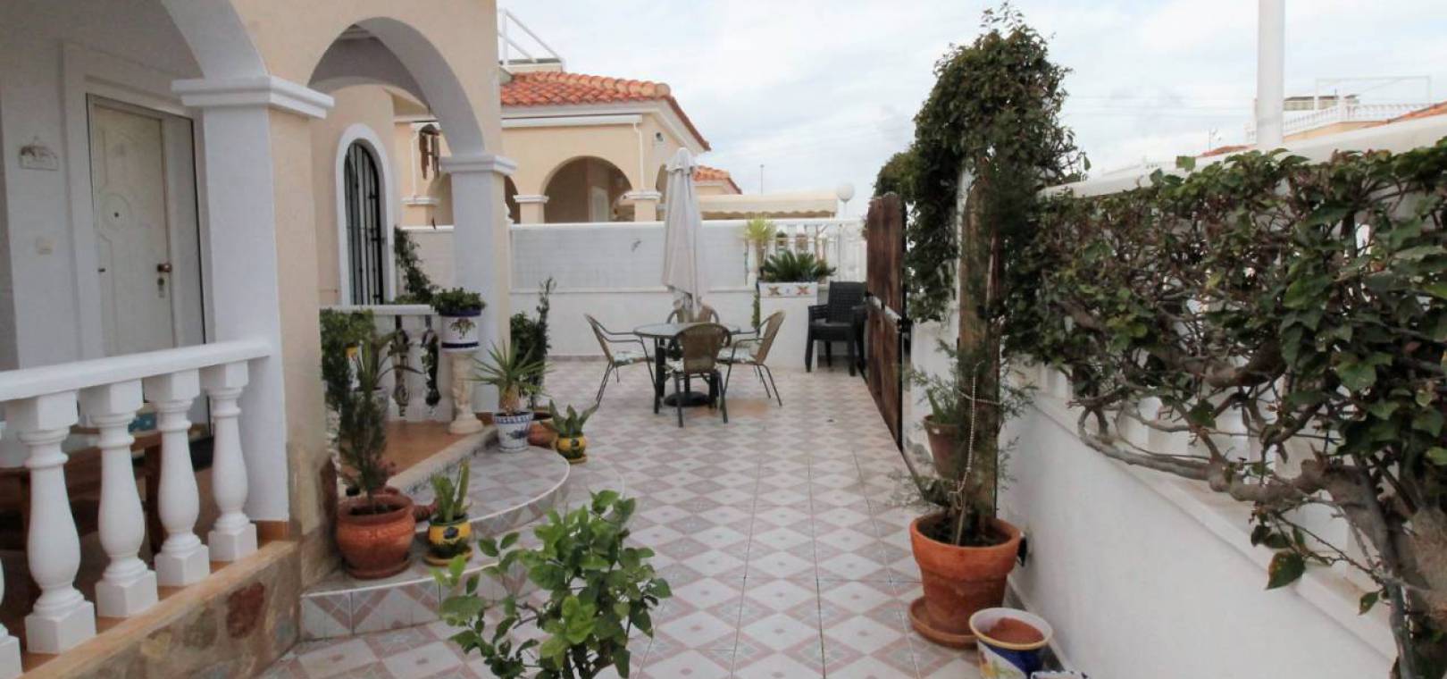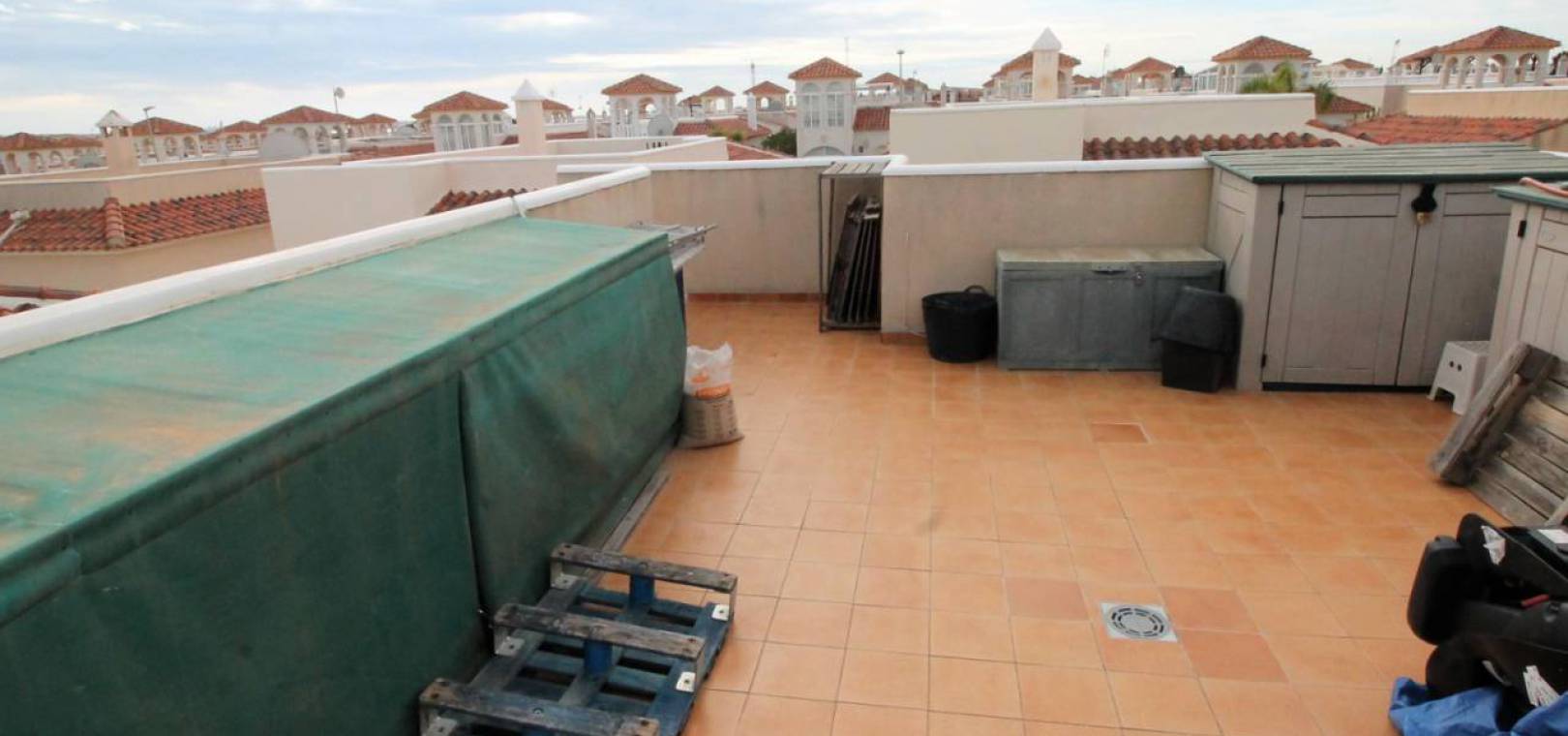Lounge/diner with a hot and cold A/C & ceiling fans, open plan fully fitted kitchen, 2 x double bedrooms with fitted wardrobes & ceiling fans, 1 x family bathroom, covered front terrace with sun awning, private rooftop solarium, 200m2 garden with a driveway for off road parking, 2 x communal swimming pools & much more.