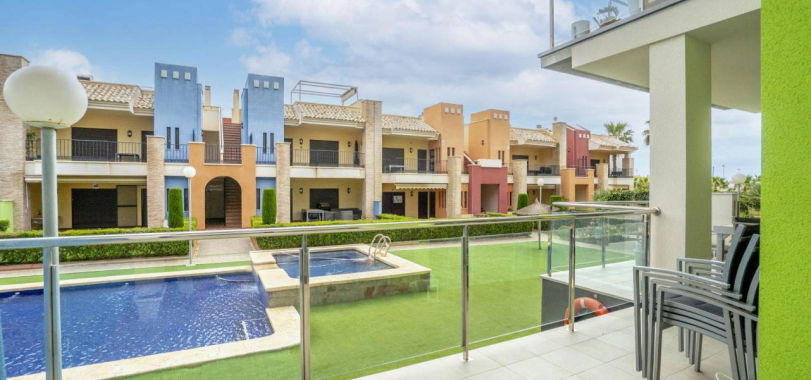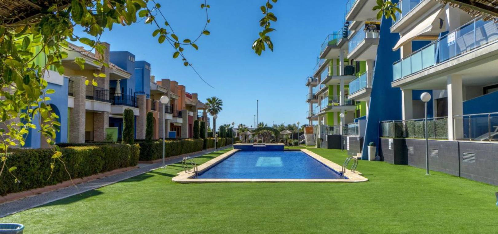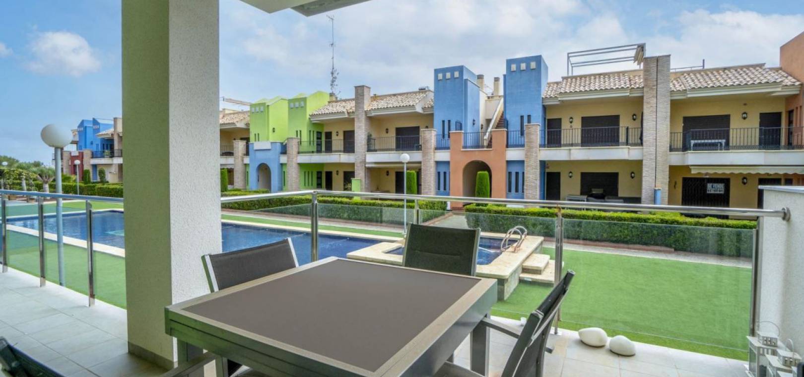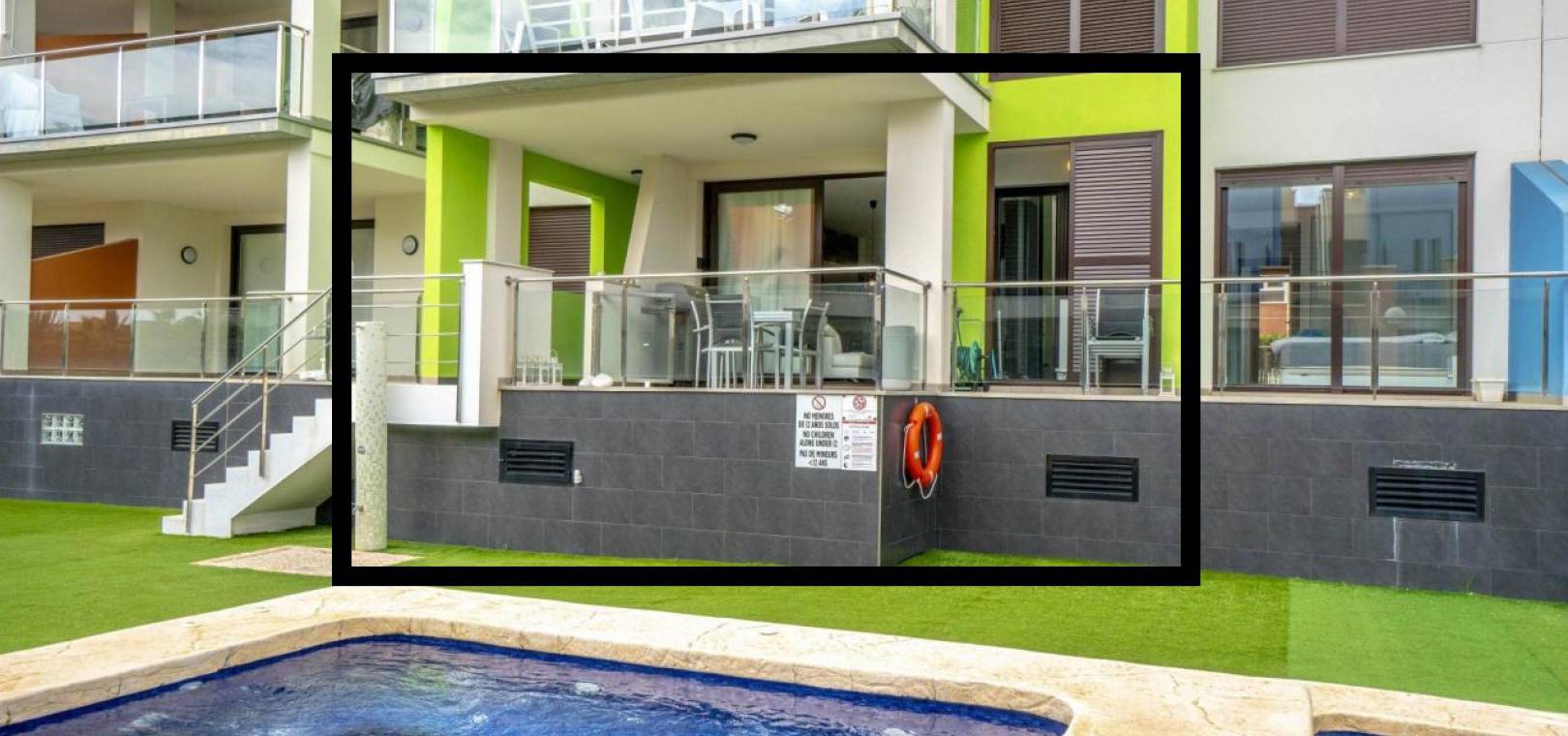 A luxury South East facing 3 bed 2 bath ground floor apartment over looking the communal swimming pool located in Royal Park Green Spa Resort, Lomas de Cabo Roig, Cabo Roig, Costa Blanca. Virtual Viewing Available On This Property!